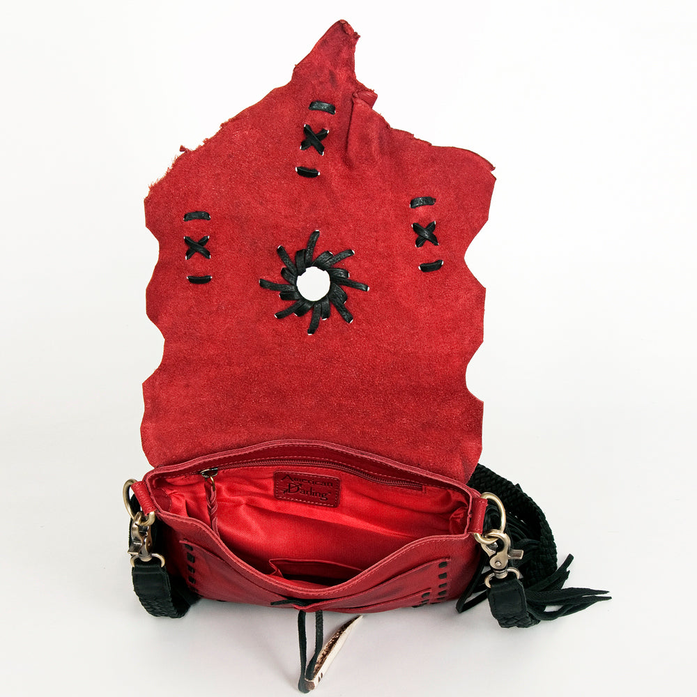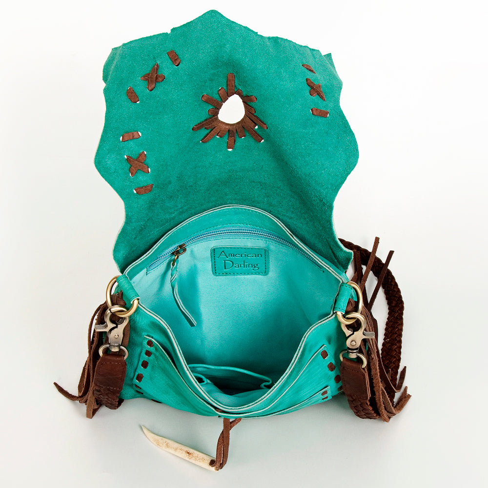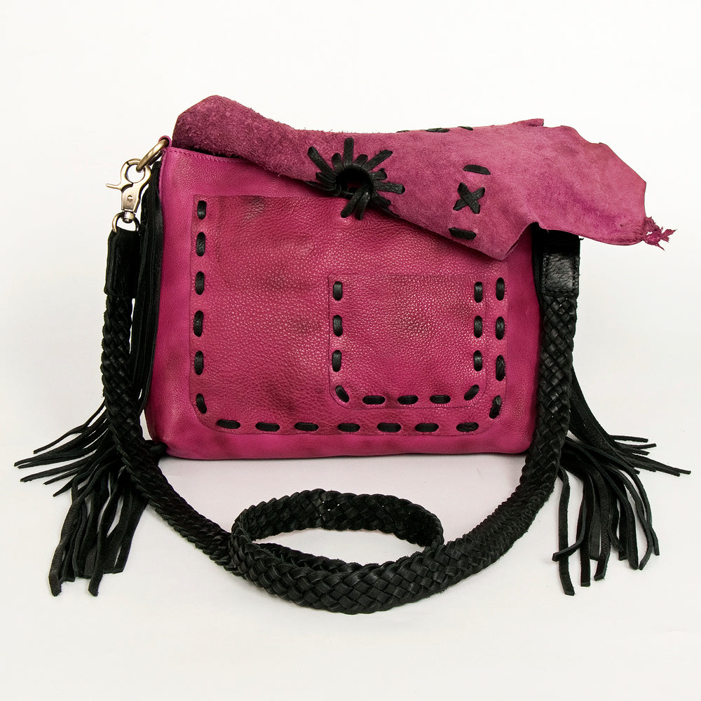 ADBGM283 Tribal Leather Crossbody - Fringe, Bone Accent & Braided Strap