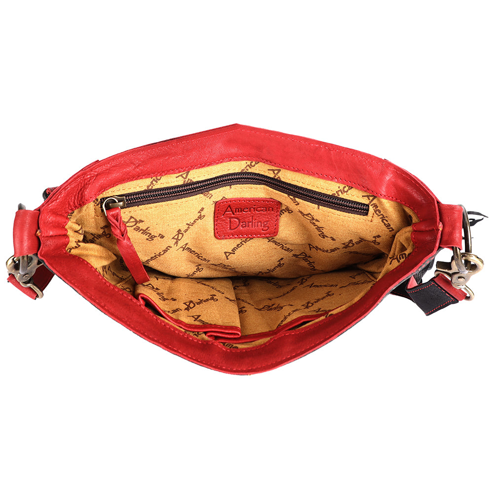 ADBGM352 Red Western Rodeo Leather Messenger Bag with Fringe & Applique- Cowgirl Statement Messenger