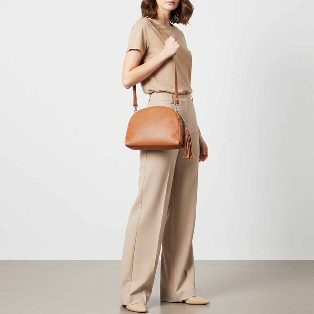 Genuine leather shoulder strap.