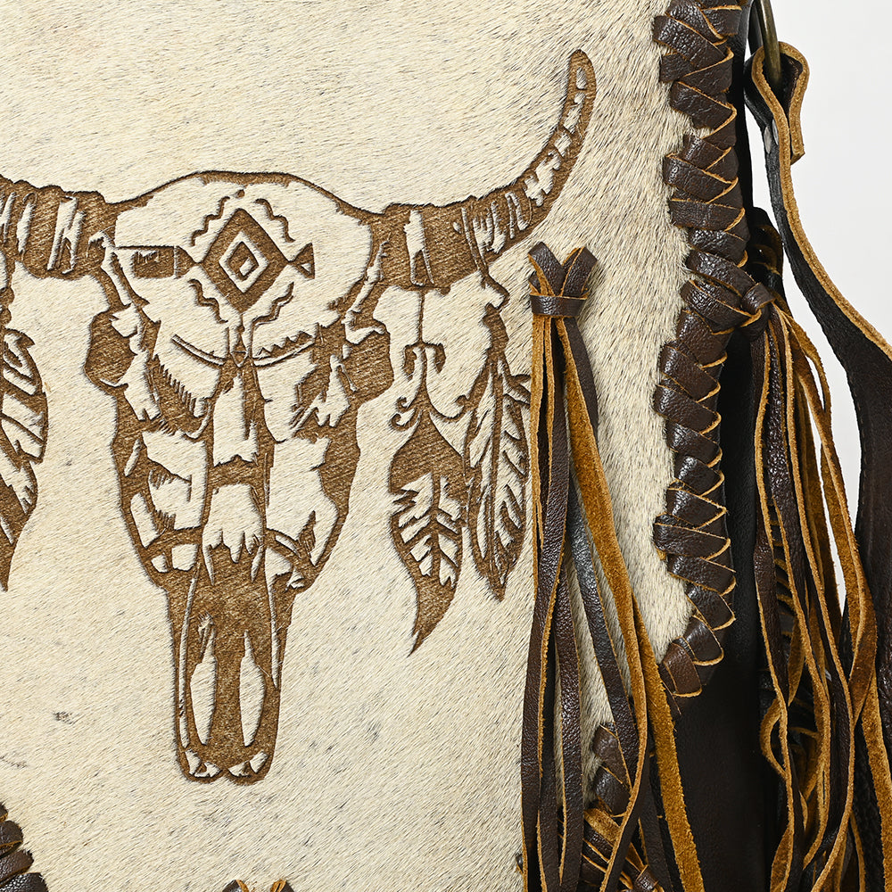 ADBGM416 Engraved Designed Hair-On Fringe Messenger Bag with Braided Trim - American Darling