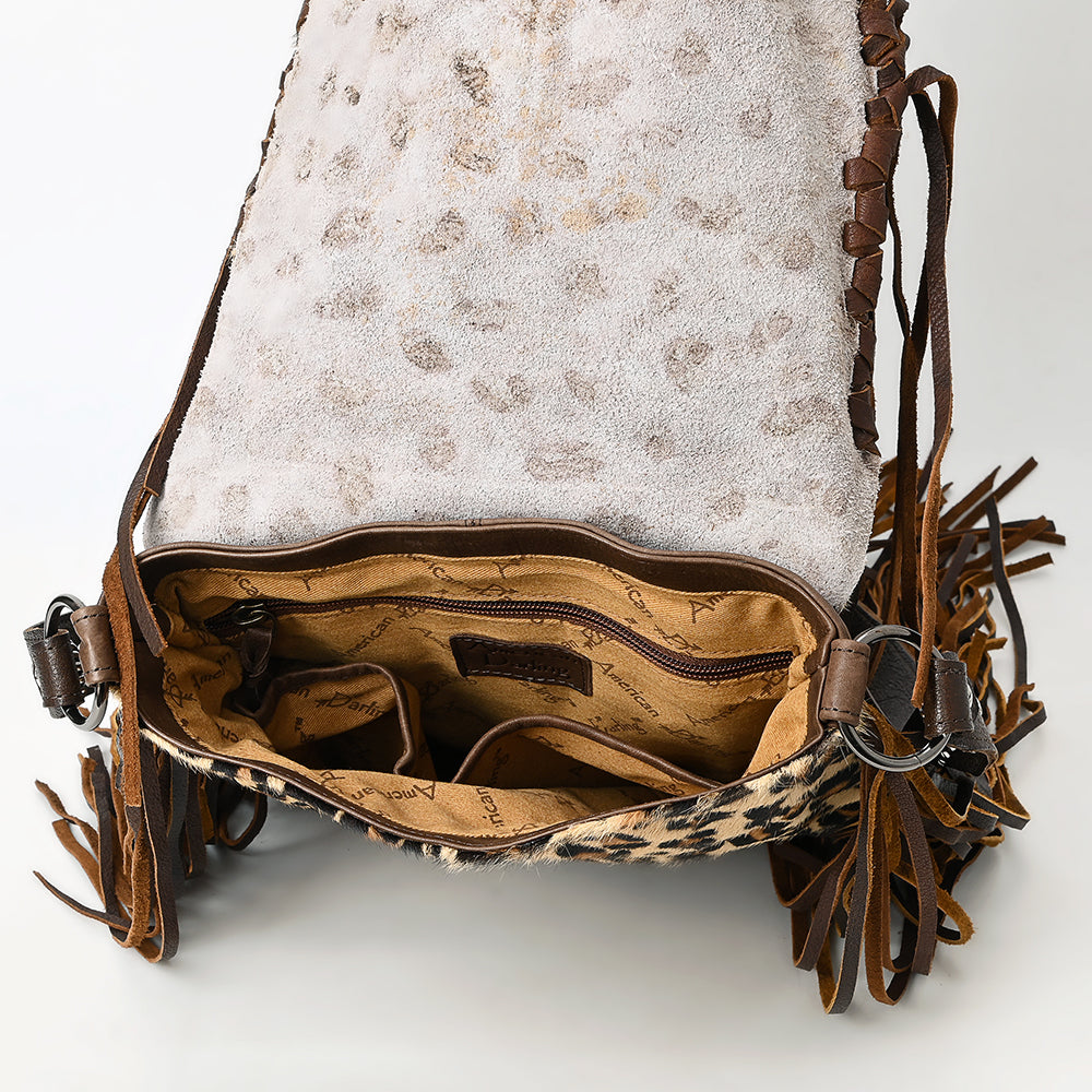 ADBGM477 Cowhide & Leather Western Fringe Messenger Bag - Western Concho Bag with Turquoise Accent