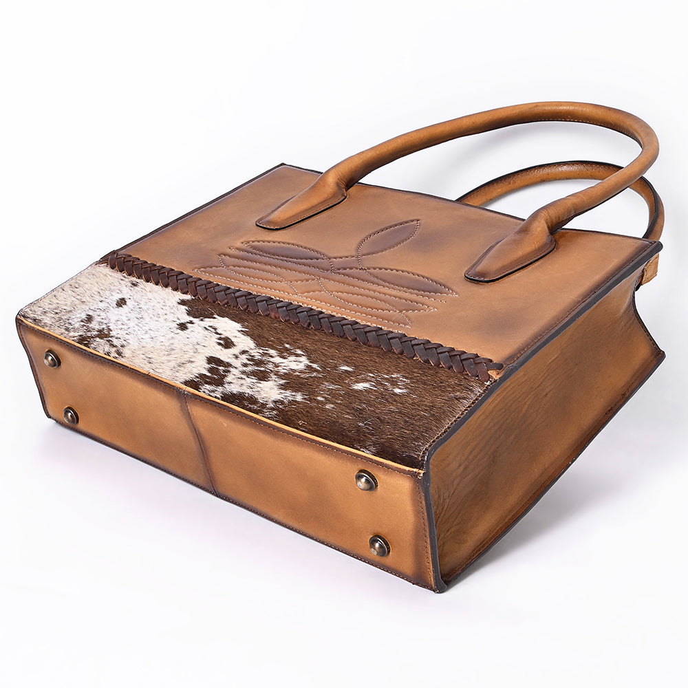ADBGM599 Hair-On Hide & Tan Genuine Leather Western Tote Bag with Braided Detail