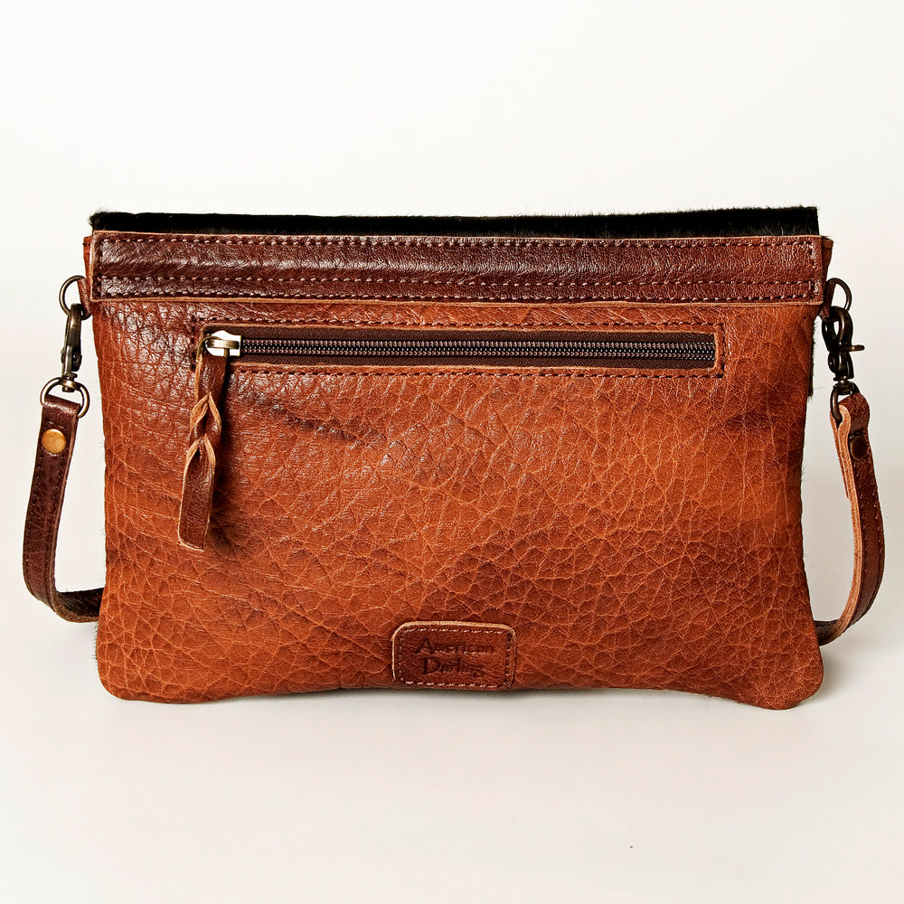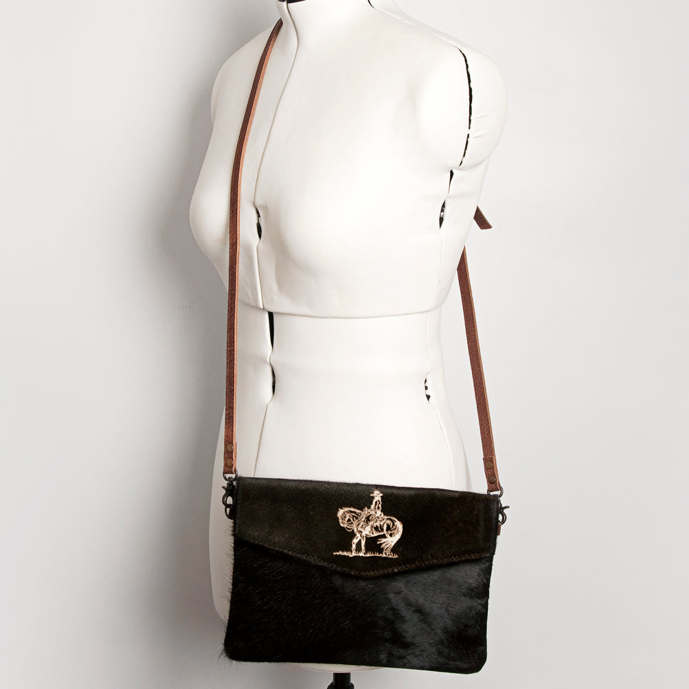 ADBGS178 Black Cowhide Leather Envelope Bag with Cowboy Horse Embroidery - Western Sling Purse