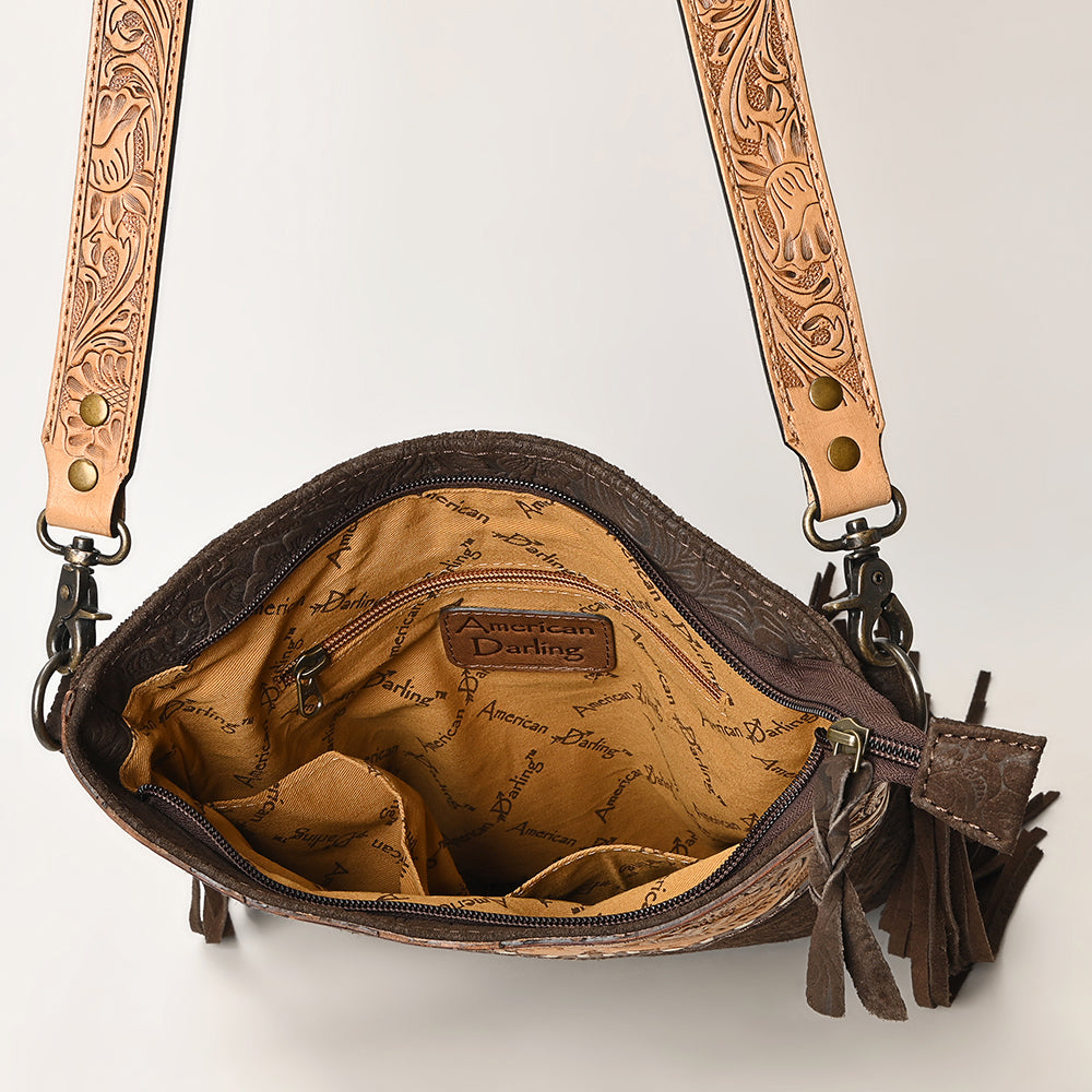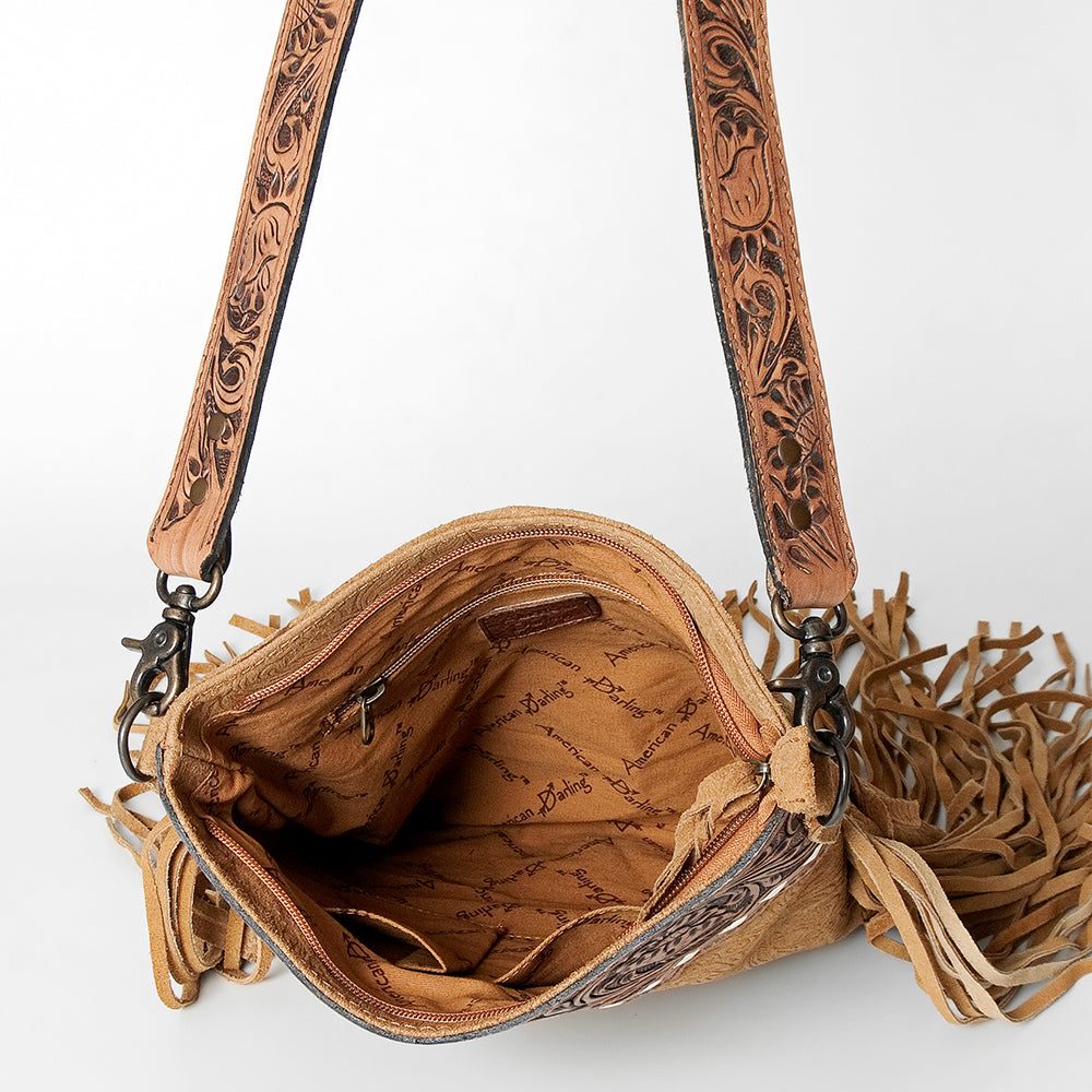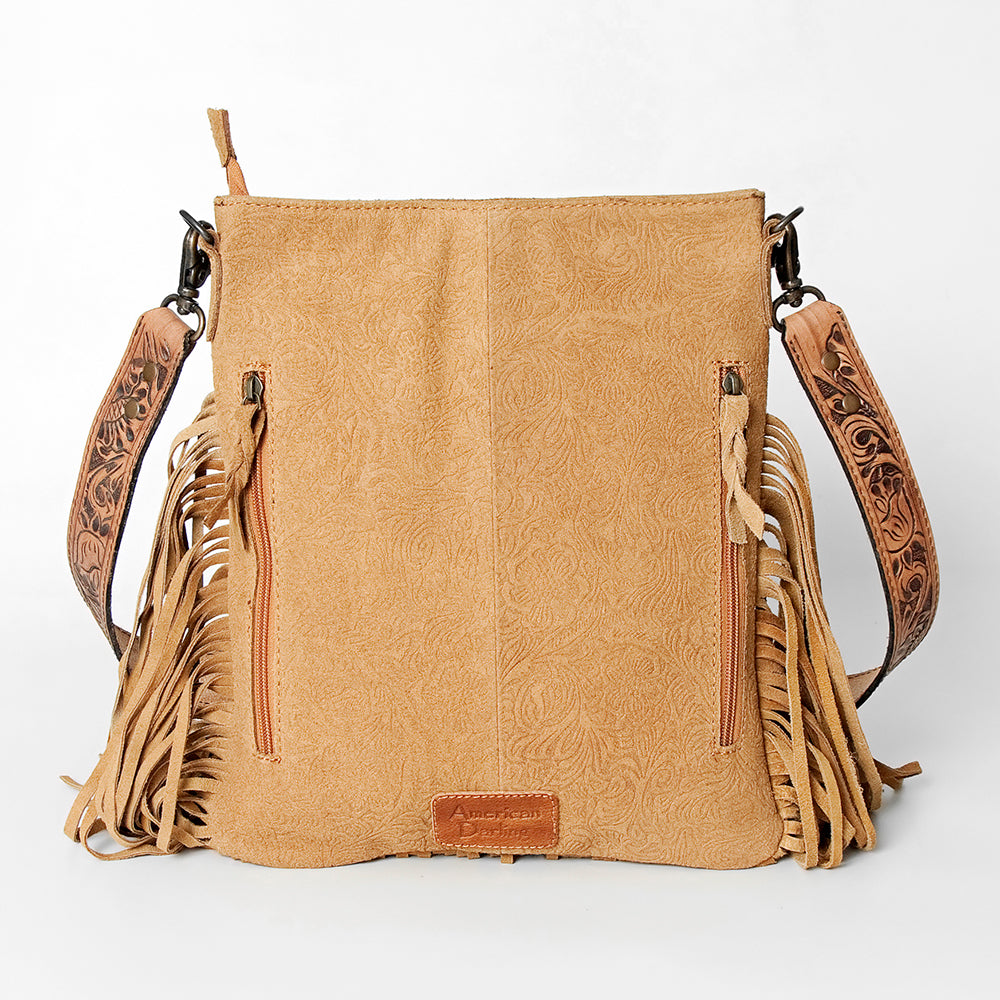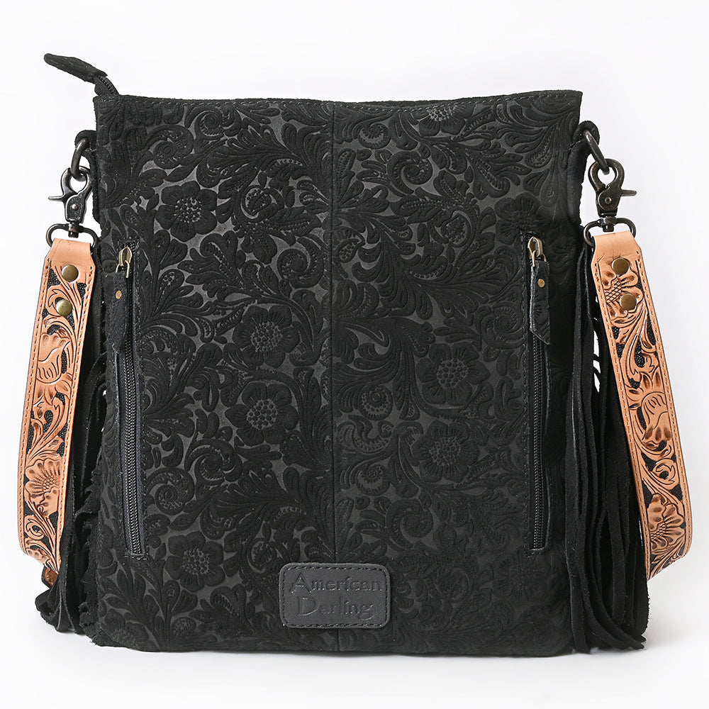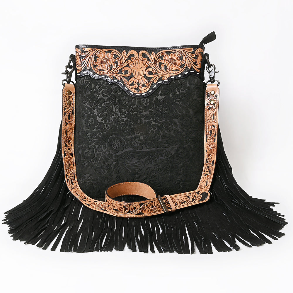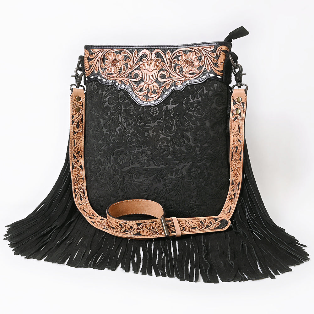 ADBGS192 Floral Embossed Leather Large Crossbody Bag with Fringe & Tooled Strap - Western Elegant Purse