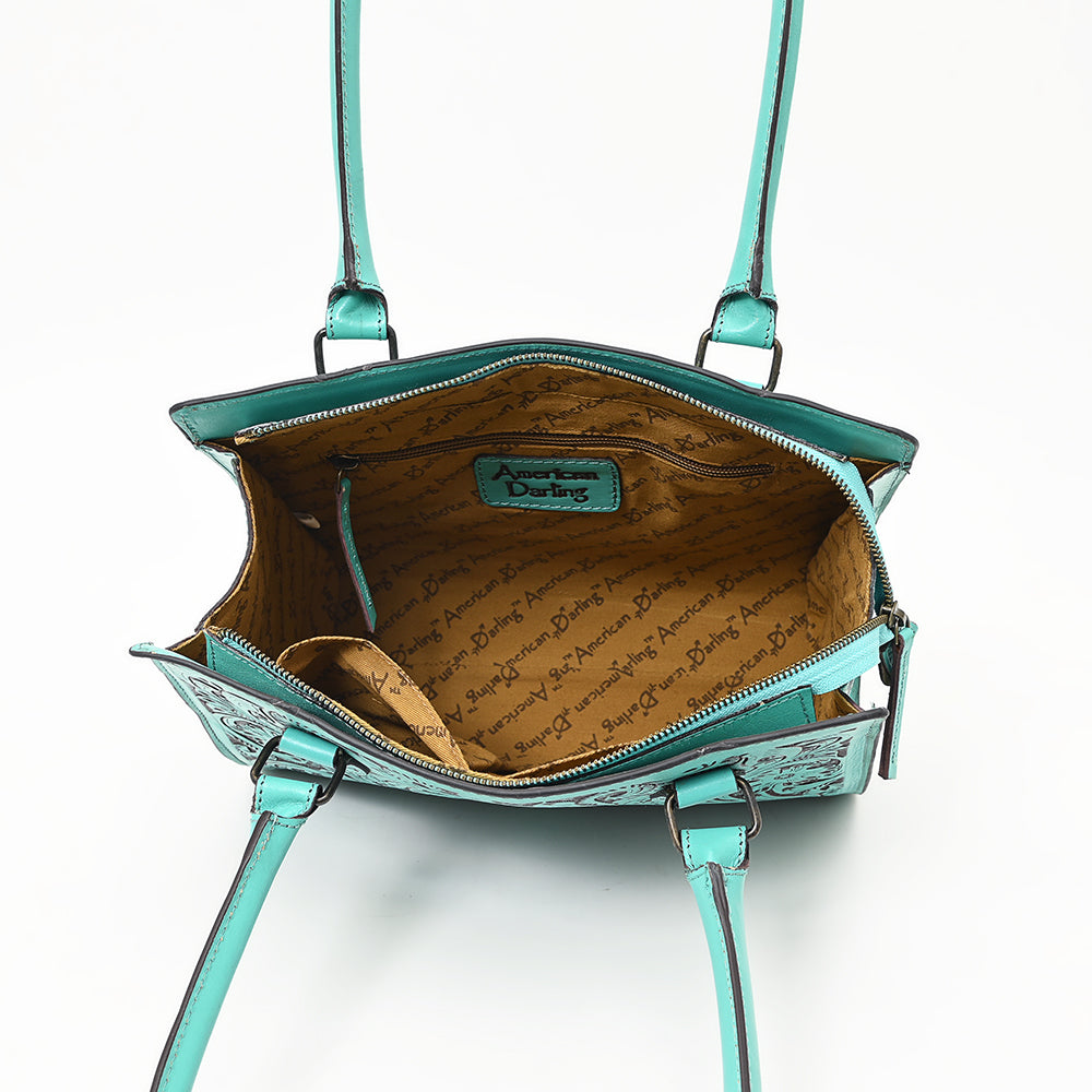 ADBGZ732 Turquoise Hand Tooled Leather Tote Bag - Western Floral Cowgirl Purse