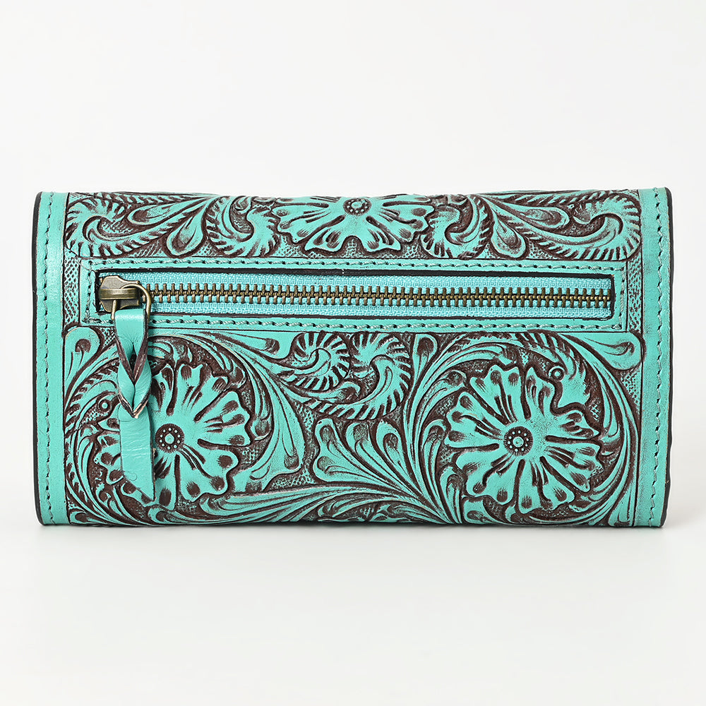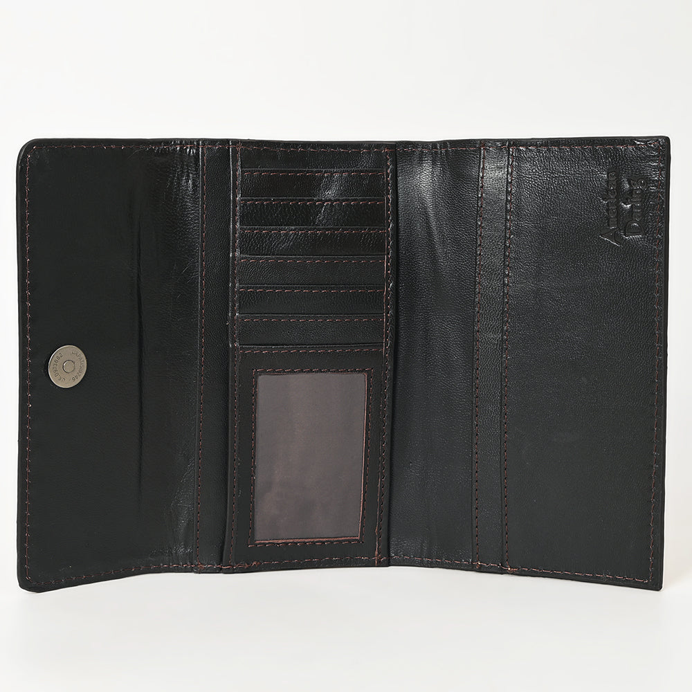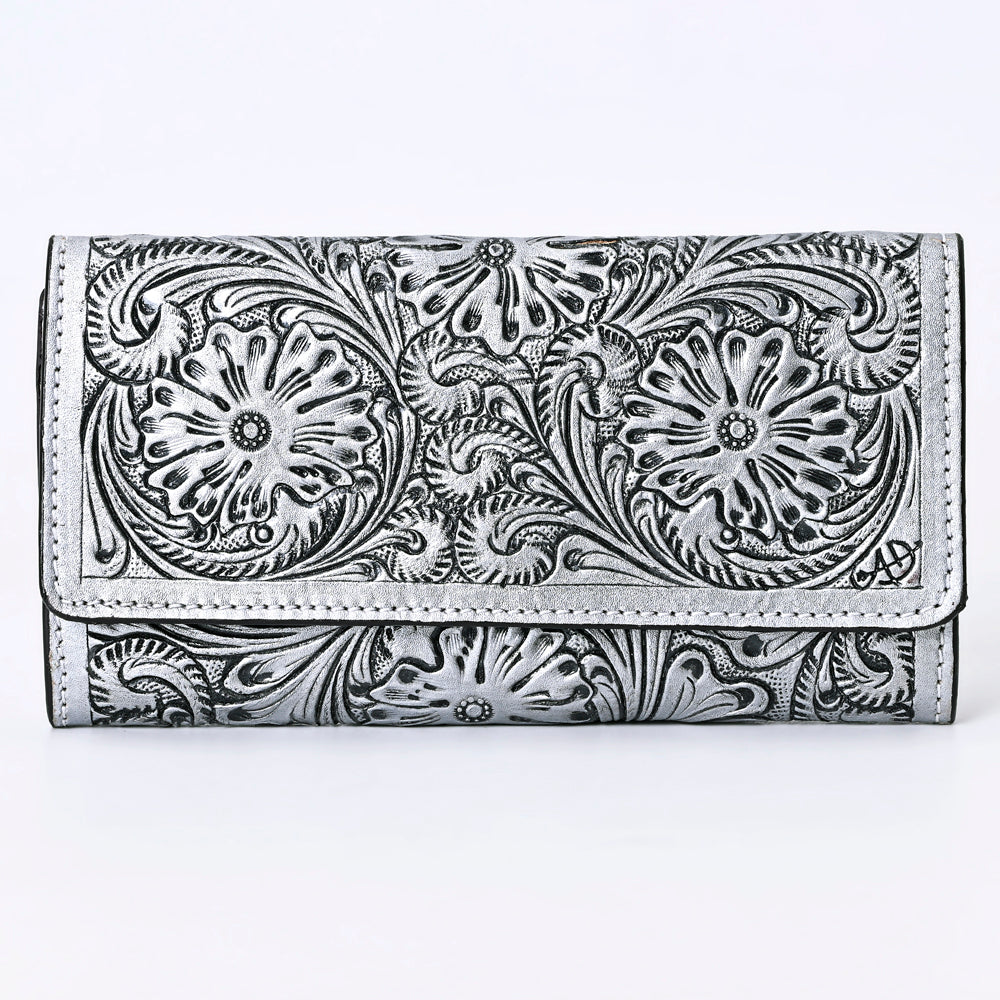ADBGZ736 Hand Tooled Leather Tri-Fold Wallet - Natural Western Floral Cowgirl Style