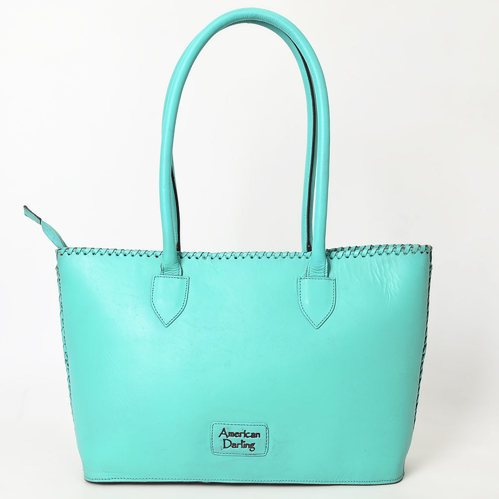 ADBGZ756 Tall Hand Tooled Leather Tote Bag - Western Floral Half-Tooled Cowgirl Purse