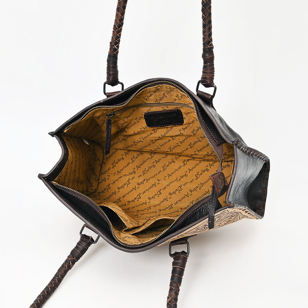 ADBGZ757 Tall Western Tote - Hand Tooled Leather Bag with Braided Handles