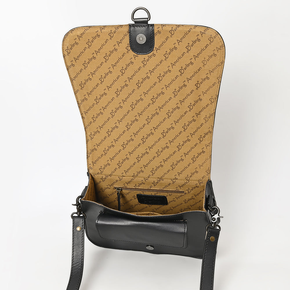 ADBGZ780A Black Hand-Tooled Leather Crossbody Bag - Western Floral Flap Purse