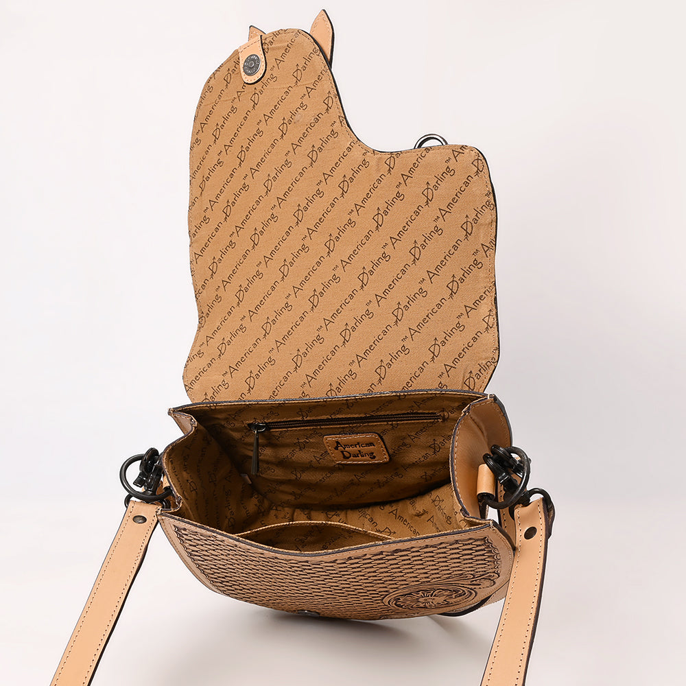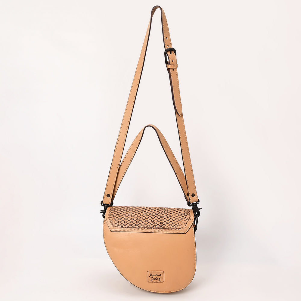 ADBGZ818 Western Saddle bag Crossbody - Hand-Tooled Leather Buckle Flap Bag in Natural Tan