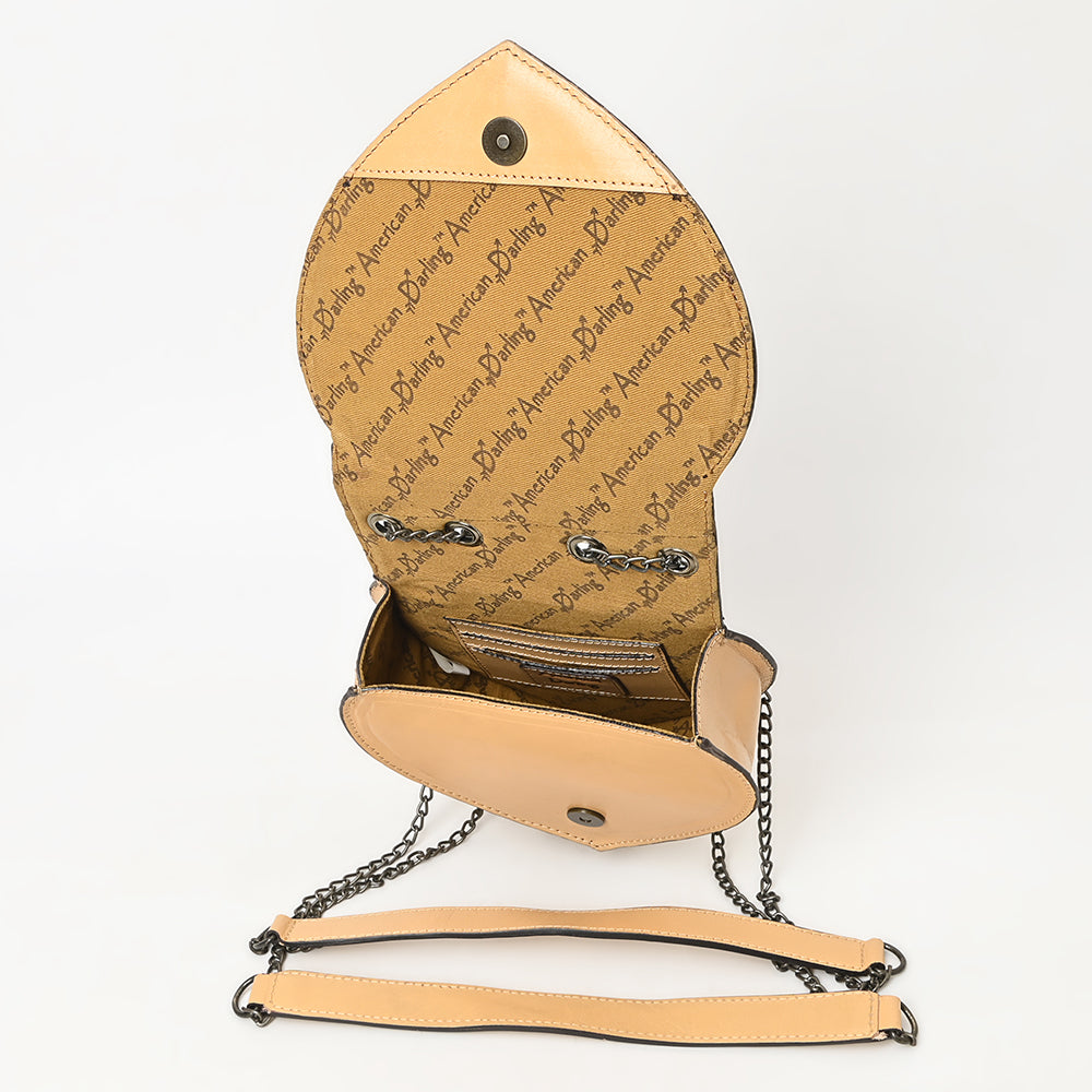 ADBGZ819 Heart-Shaped Hand-Tooled Leather Crossbody Canteen Bag with Chain Strap