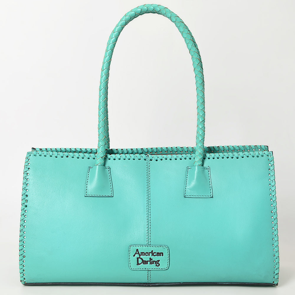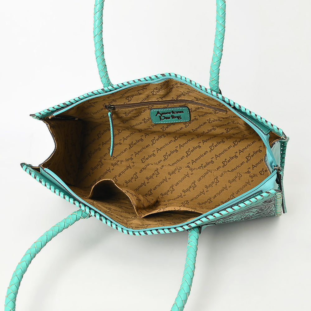 ADBGZ833 Hand-Tooled Leather Western Handbag - Floral Design with Braided Handles