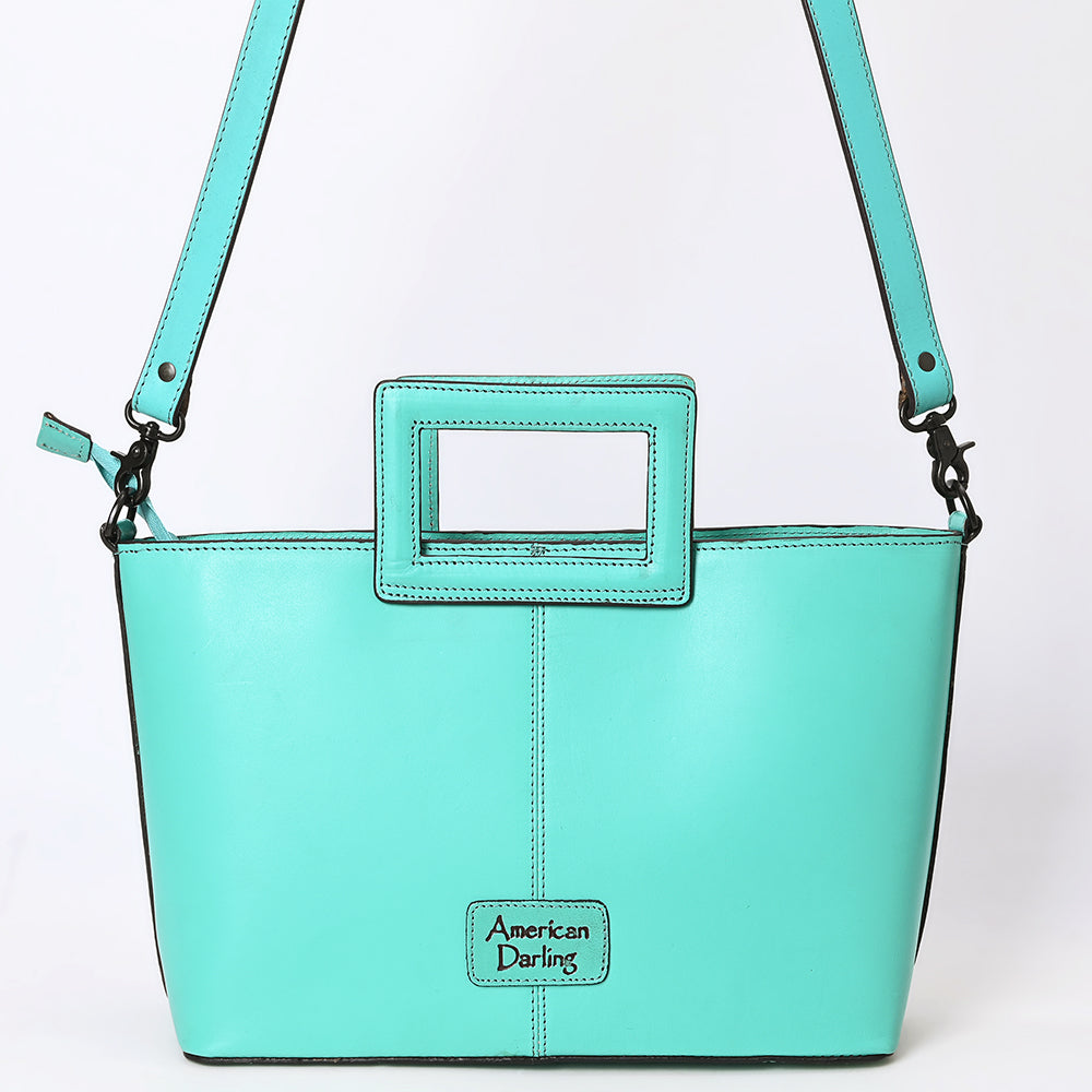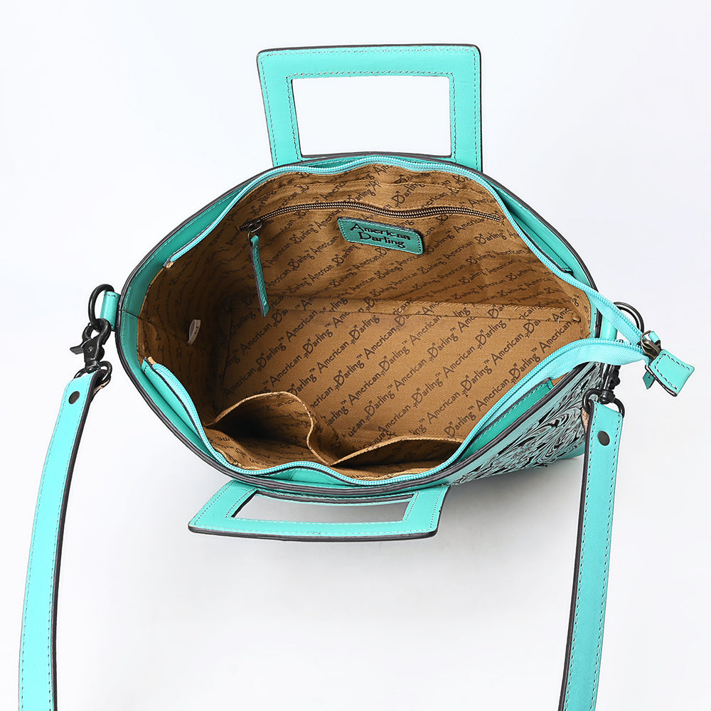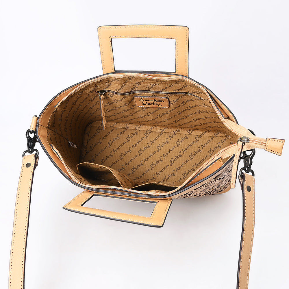 ADBGZ835 Hand-Tooled Leather Western Tote Handbag - Square Handle Design