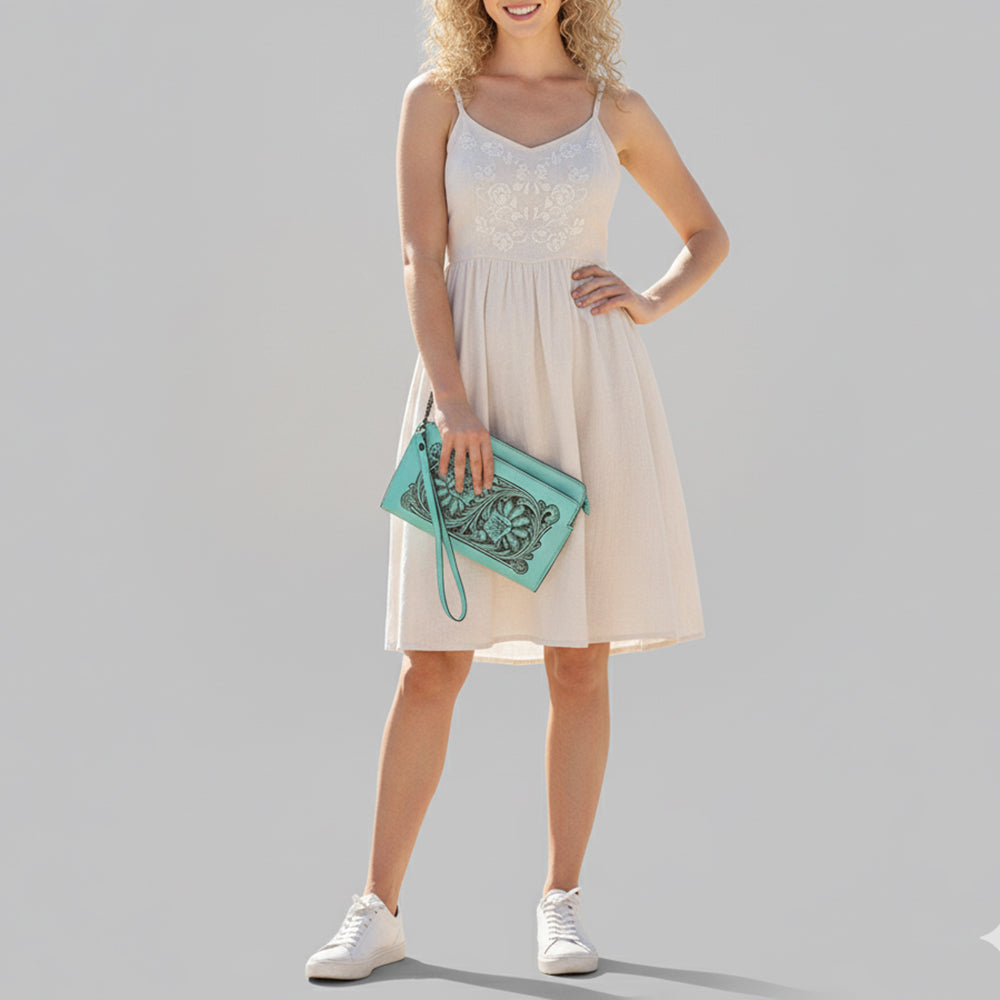 ADBGZ844 Hand-Tooled Genuine Leather Wristlet Wallet American Darling