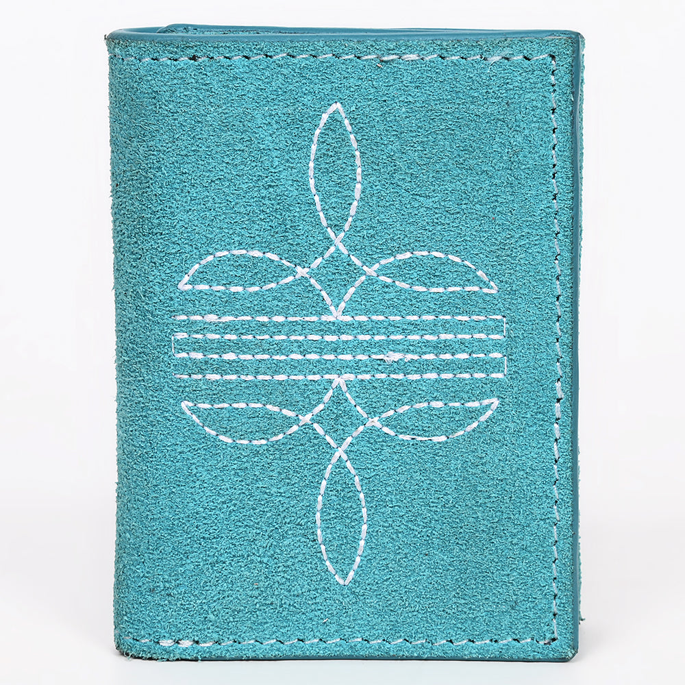 ADBGZ920 Genuine suede Leather Trifold Wallet with White Western Stitch Embroidery