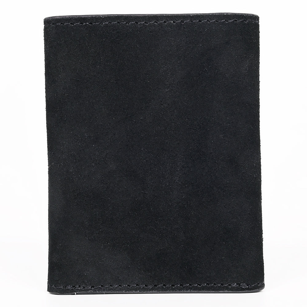 ADBGZ920A Black Genuine suede Leather Trifold Wallet with White Embroidered Stitch Detail