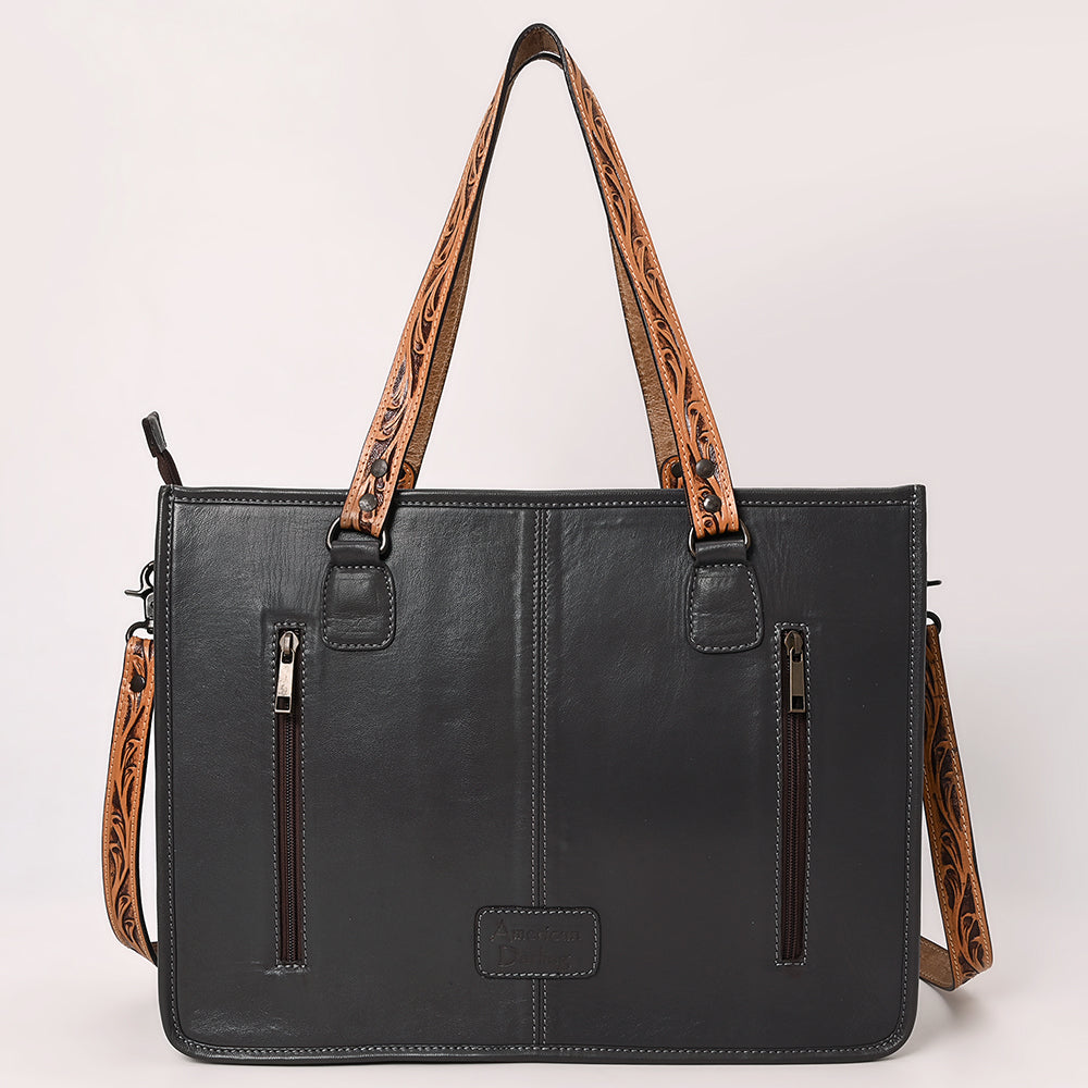 ADBGZX109 Hand-Tooled Leather Tote Bag with Hair-On Hide and Floral Western Design