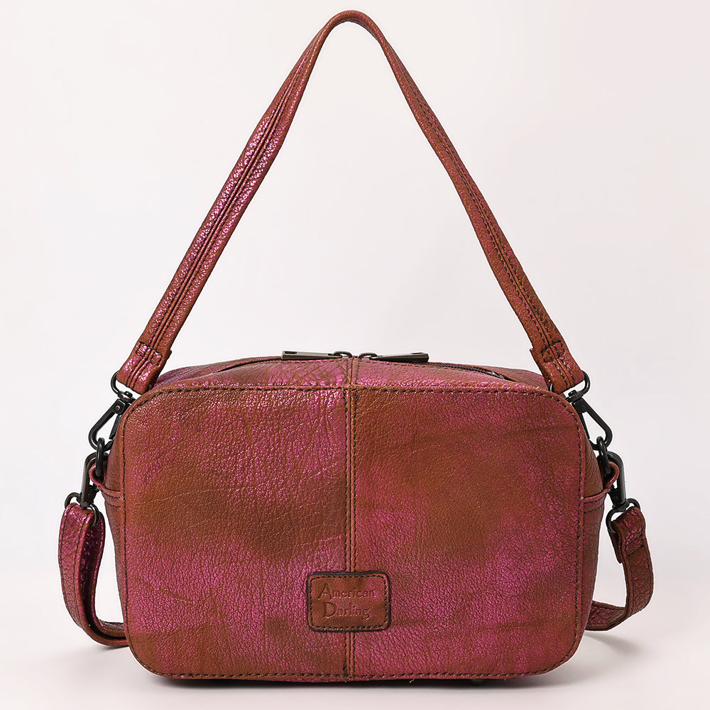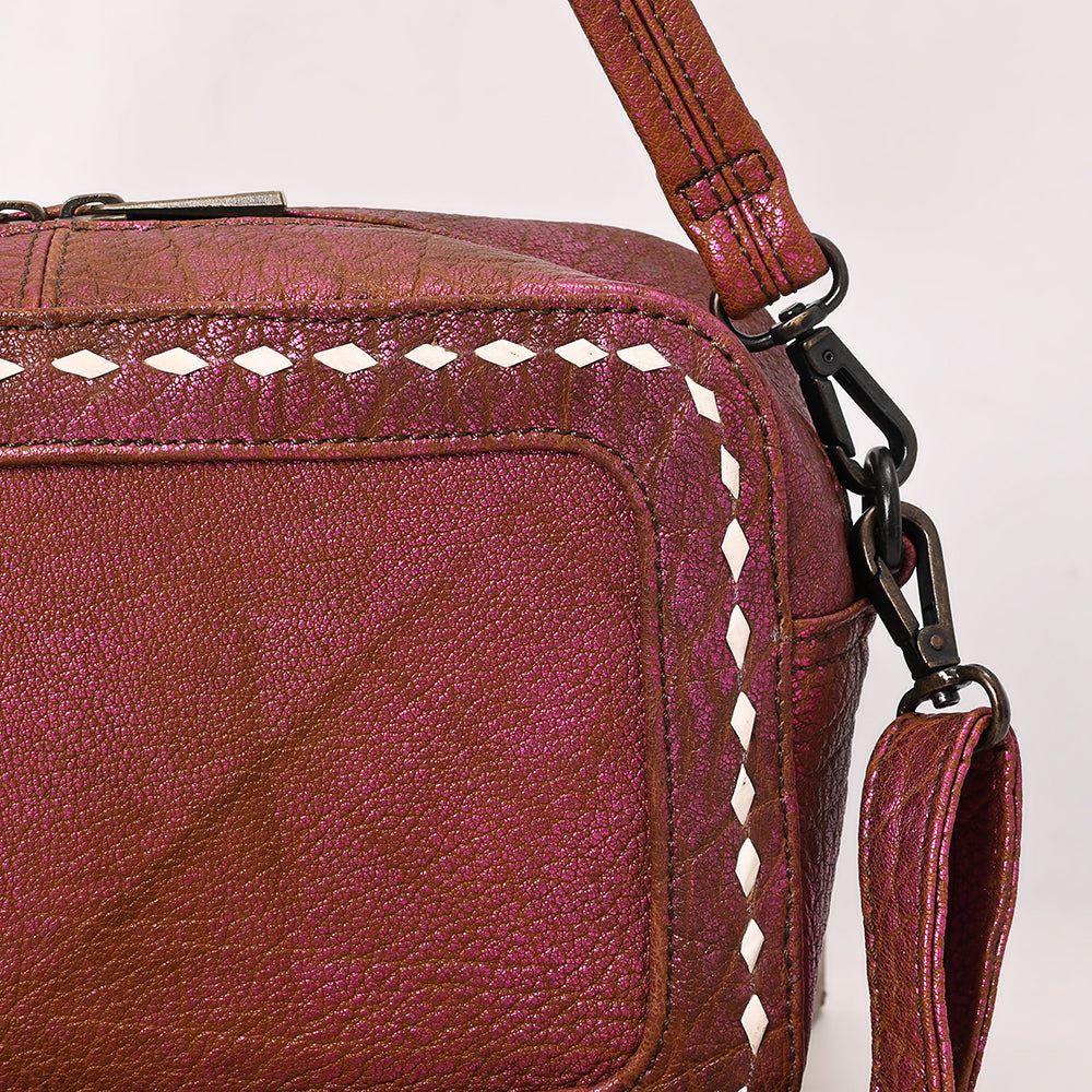 ADBGZX112 Pink Metallic Leather Camera Bag with Whipstitch Detailing