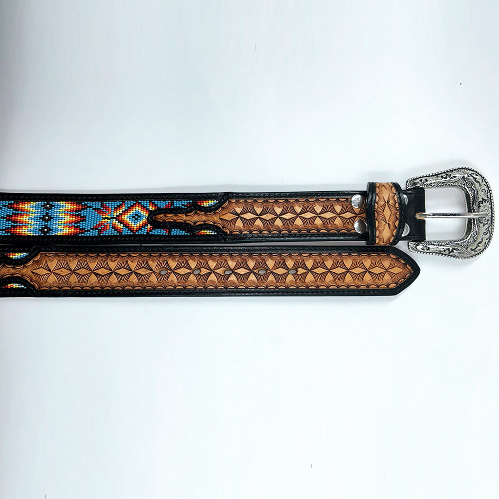 ADBLD114 Beautifully Hand Tooled Beadwork Genuine American Leather Belt Men and Women Bling