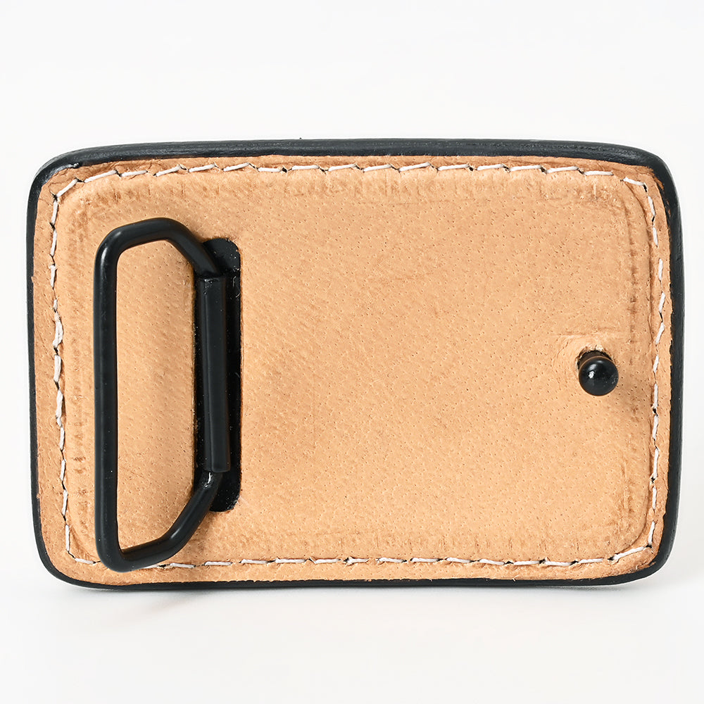 Bring the spirit of the Southwest to your wardrobe with this hand-painted leather belt buckle, featuring vibrant sunflowers, desert cacti, and prickly pears. Crafted from genuine leather and bordered with detailed stitching, this rectangular buckle offers a cheerful and rustic twist to your Western accessories. Pair it with your favorite belt for rodeos, country fairs, or everyday cowboy flair.