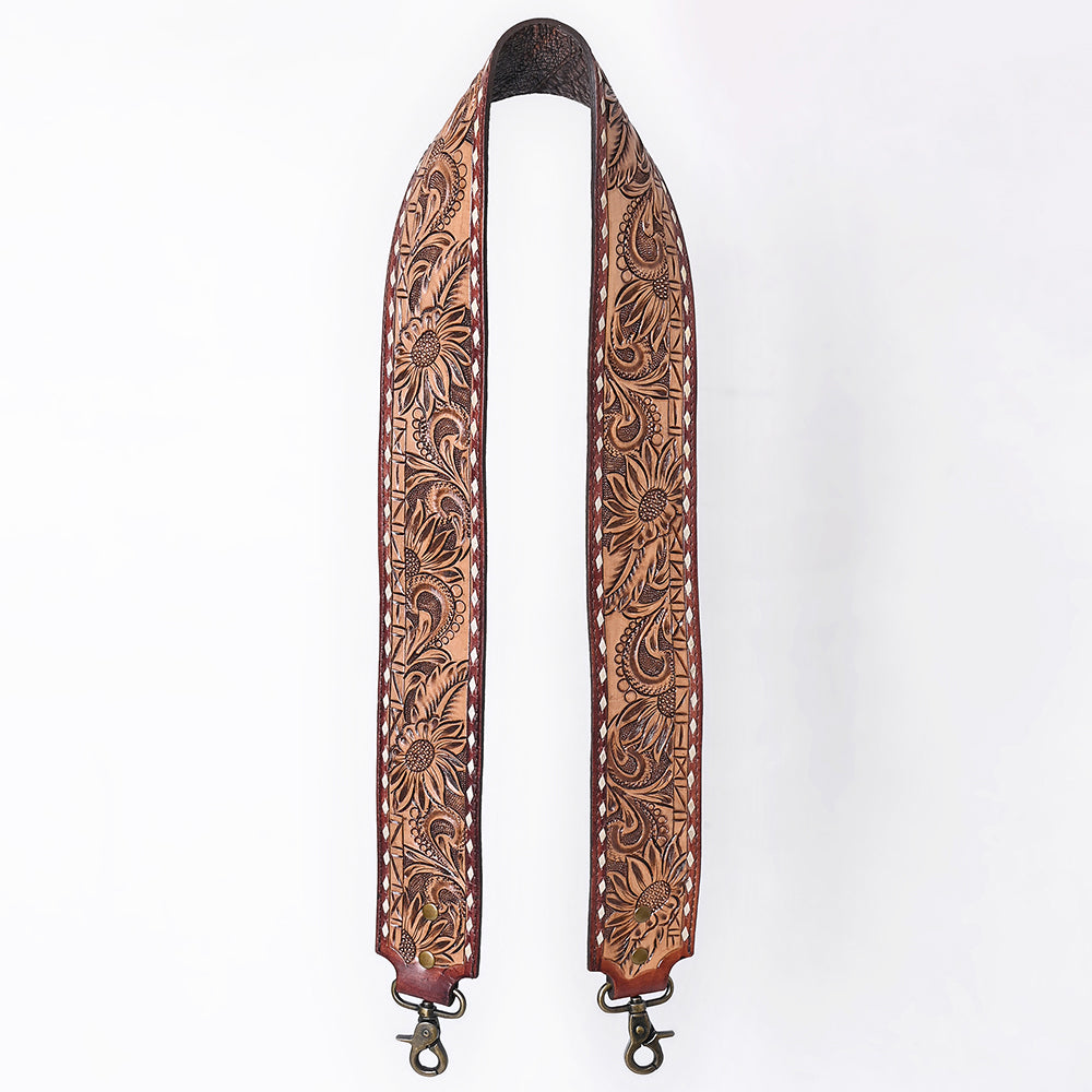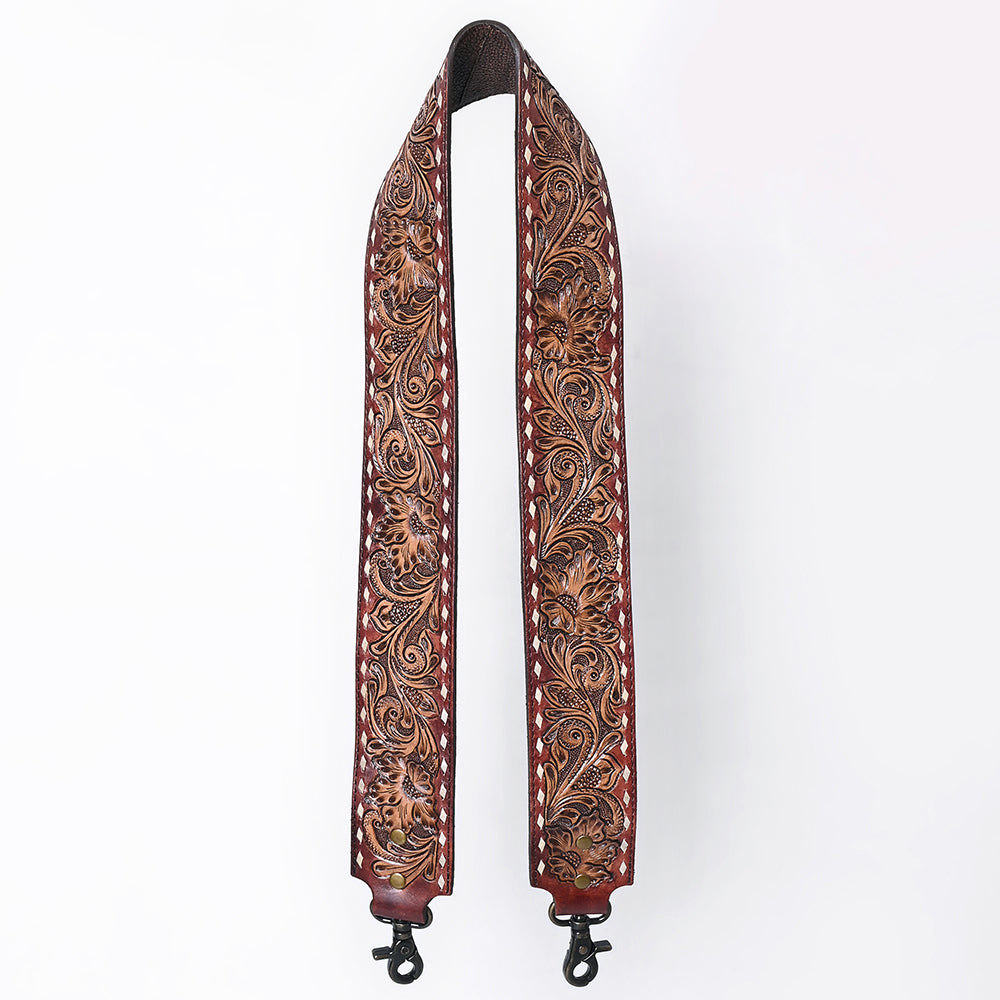 ADBT147 Wide Hand-Tooled Leather Bag Strap with Whipstitch Edges - Western Floral Carved Replacement