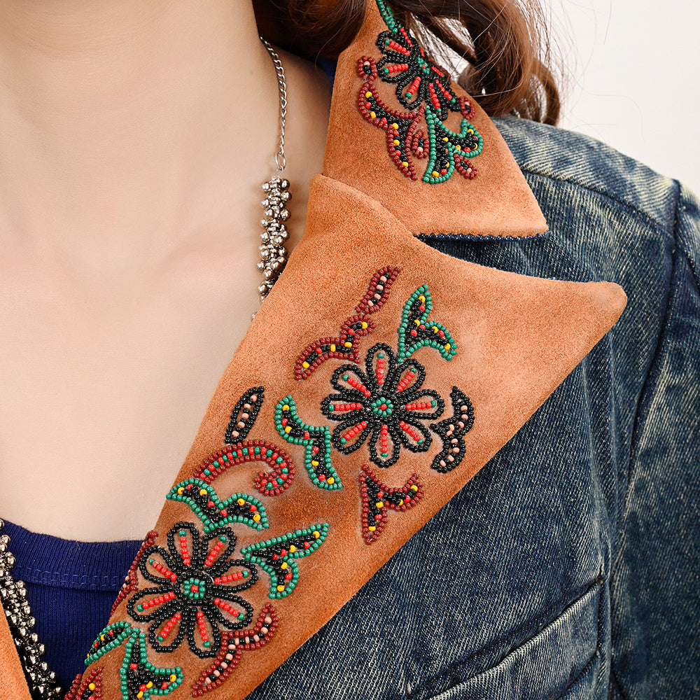 ADBZ032 Genuine Suede leather Women 100% Cotton Denim Blazer dress jacket
