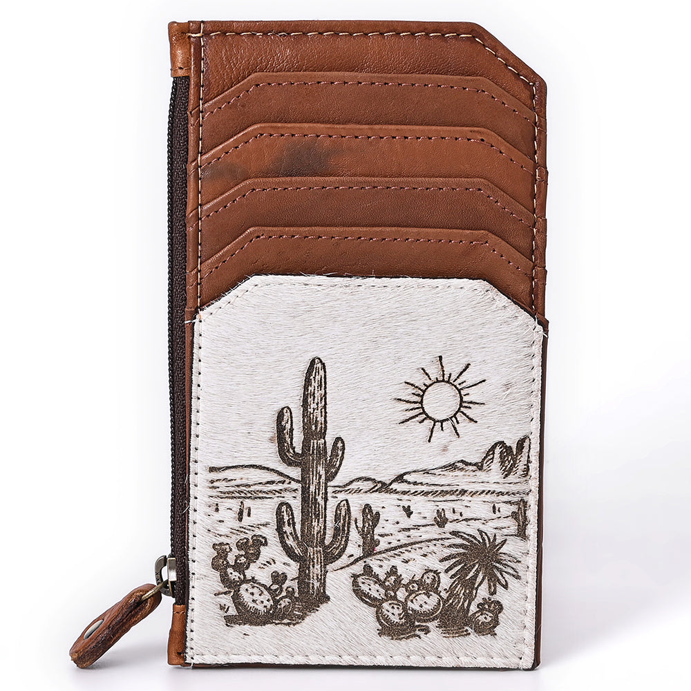 ADCCM101 Hand-Painted Card Holder - Western Cowhide Leather Zip Wallet