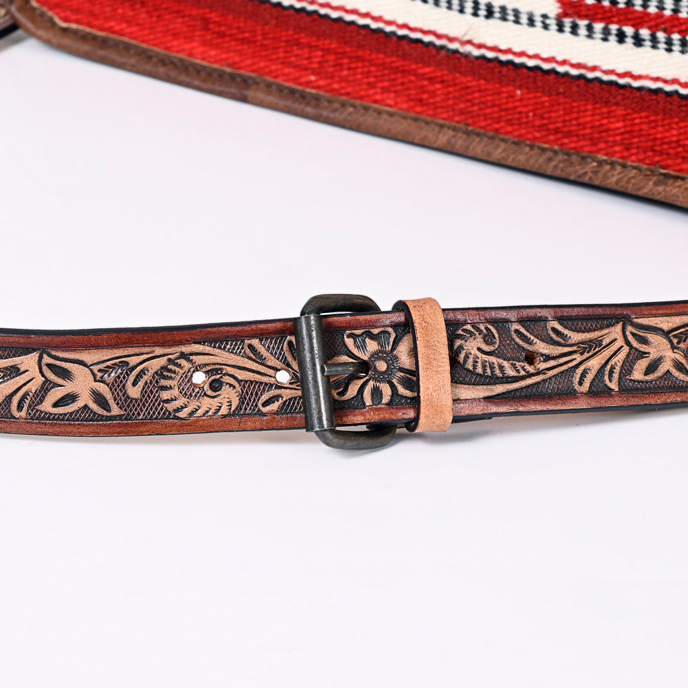 - Made from handwoven saddle blanket fabric with full-grain genuine leather