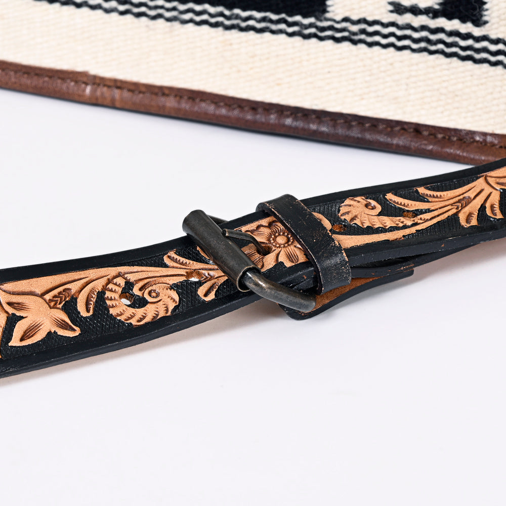 - Intricately tooled straps with Western detailing and strong reinforcement