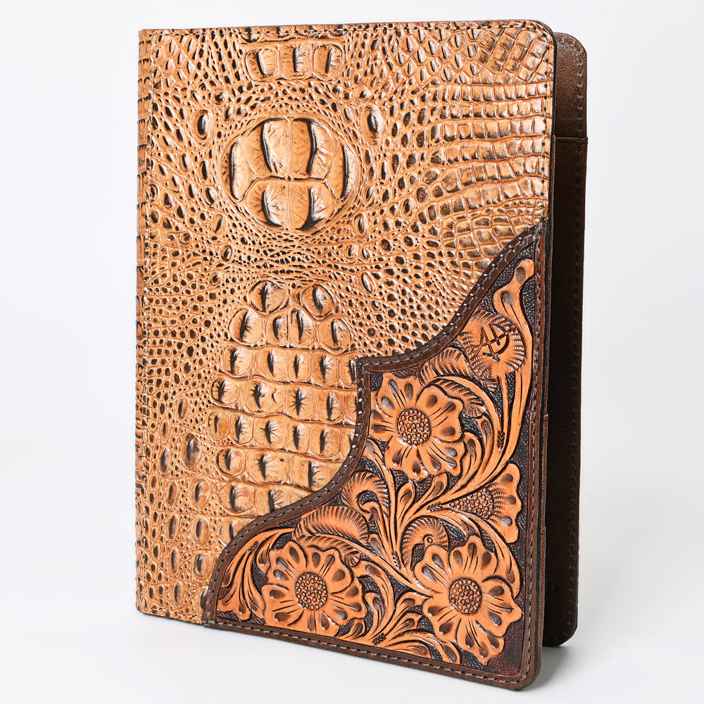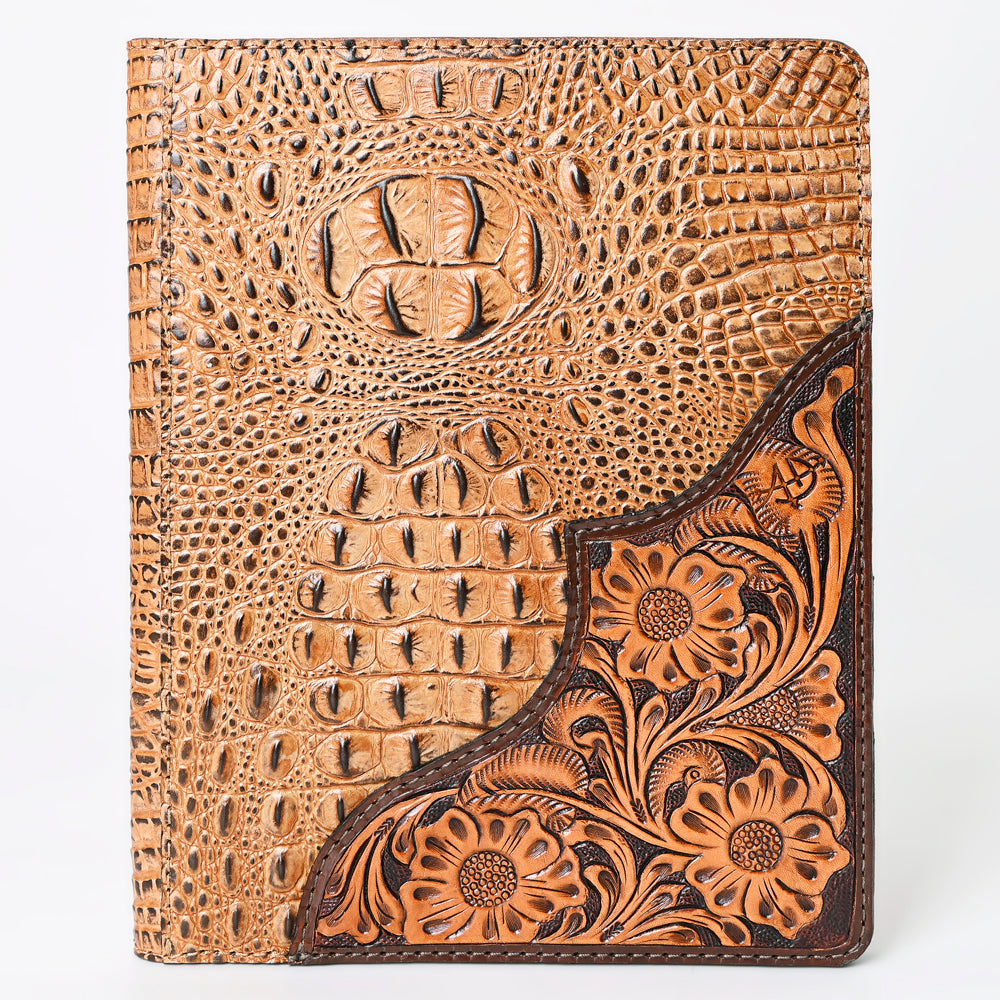 Material & Craftsmanship: This sophisticated portfolio by American Darling is handcrafted from full-grain genuine leather, blending crocodile-embossed texture with a hand-tooled floral edge. The dual-tone design captures the essence of Western refinement while offering lasting durability. Each piece is hand-finished by skilled artisans to preserve natural grain and beauty.