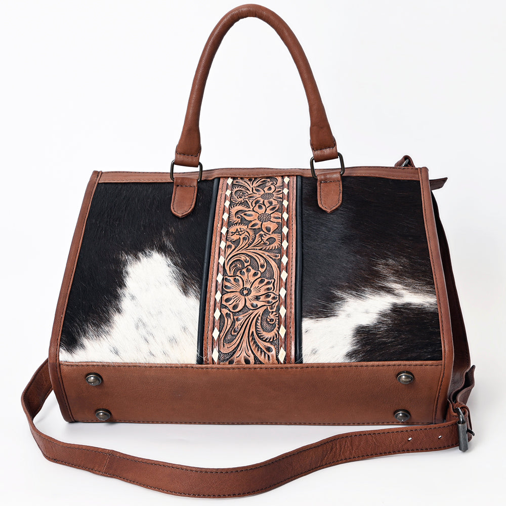 ADBG1085 American Darling Hair-on Cowhide Leather Tote Bag with Tooled Floral Panel