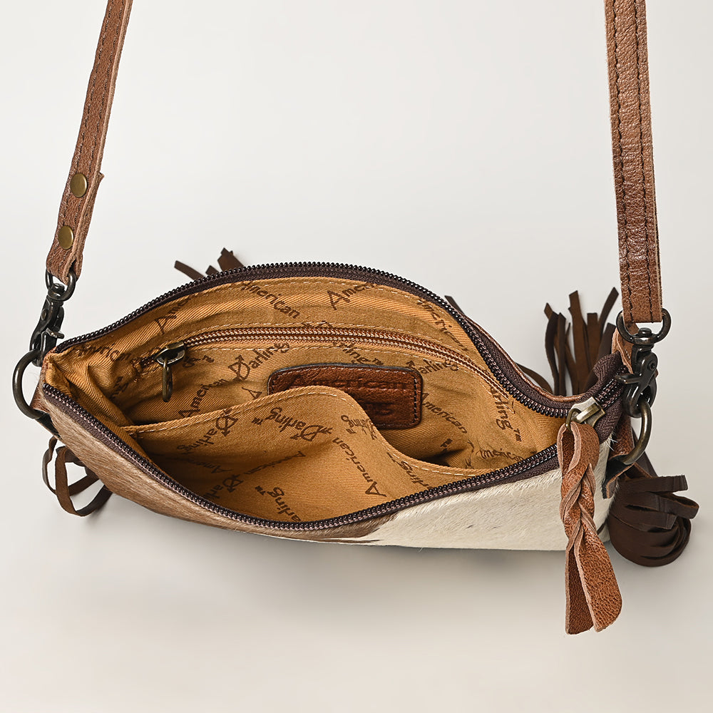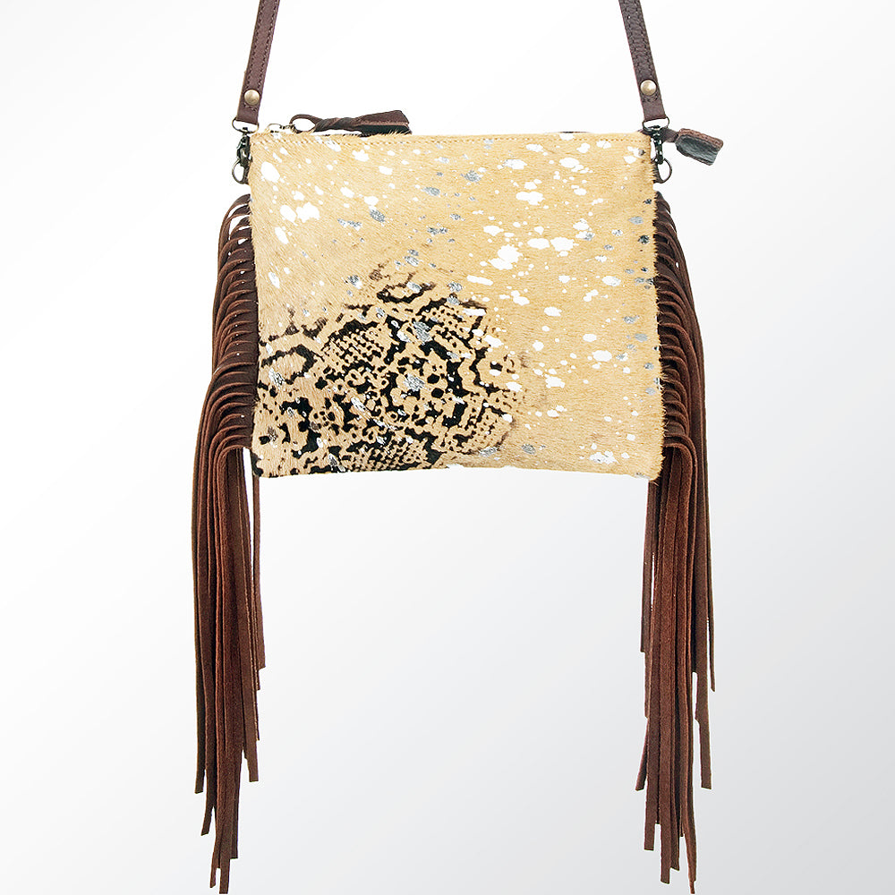 ADBG109 American Darling Hair-On Cowhide Western Crossbody Bag with Leather Fringe Detail
