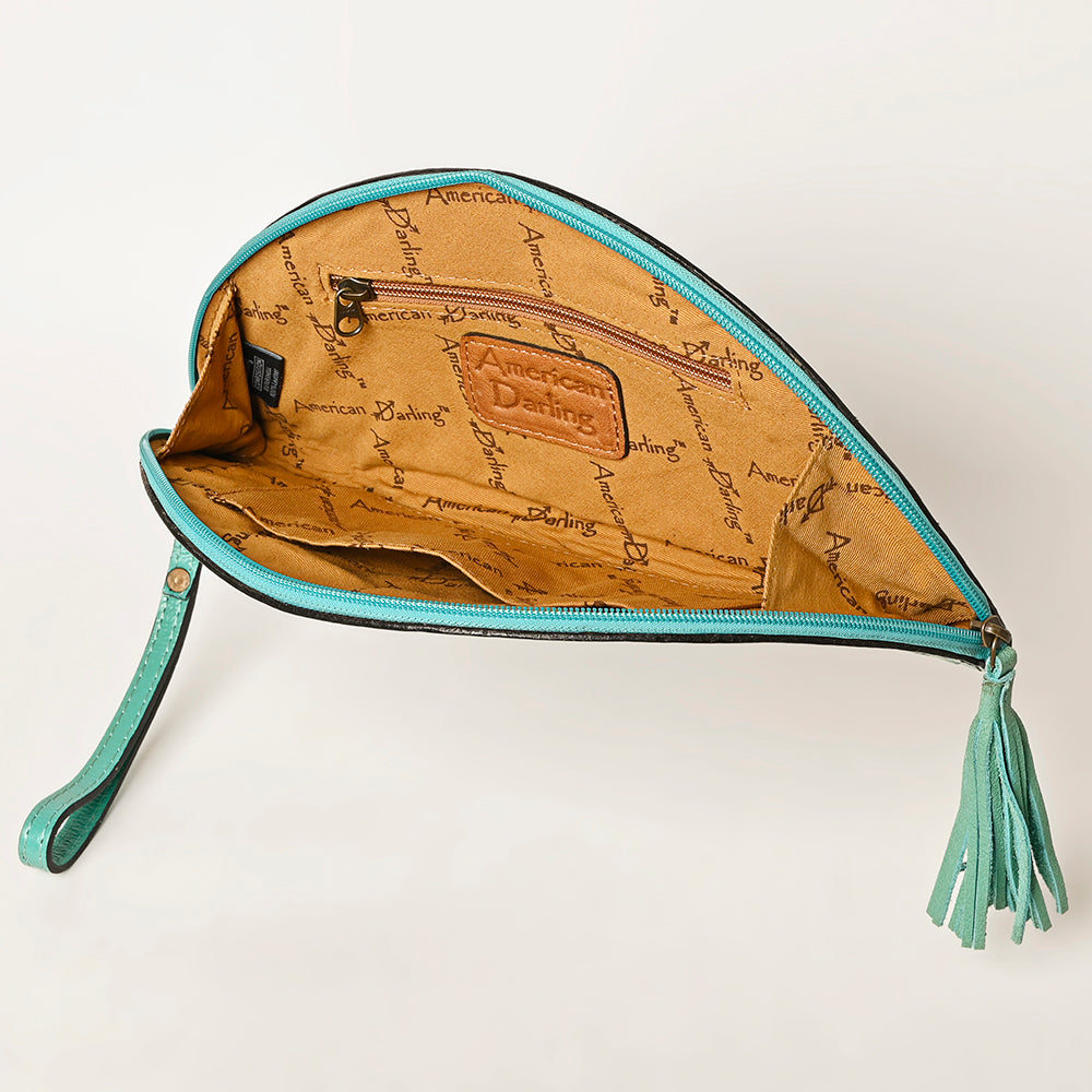 ADBG1233 American Darling Hand-Tooled Western Leather Taco Bag - Genuine Floral Carved Designer Wristlet