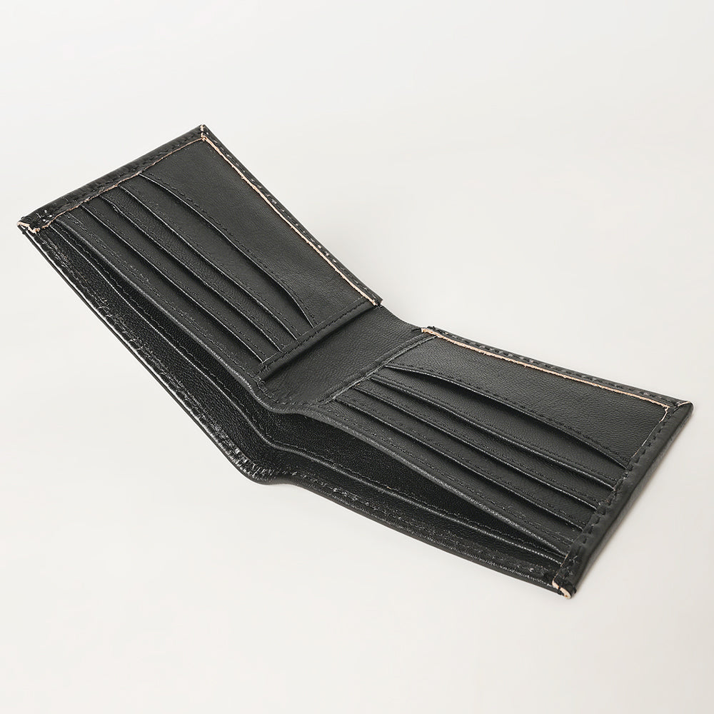 Invest in rugged elegance with this classic bifold wallet from American Darling. Handcrafted from durable, genuine leather, the exterior is completely covered in deep, traditional floral and scroll hand-tooling, lending a luxurious, textured finish. The classic horizontal bifold structure ensures a comfortable, pocket-friendly profile, making it ideal for both front and back pocket carry.