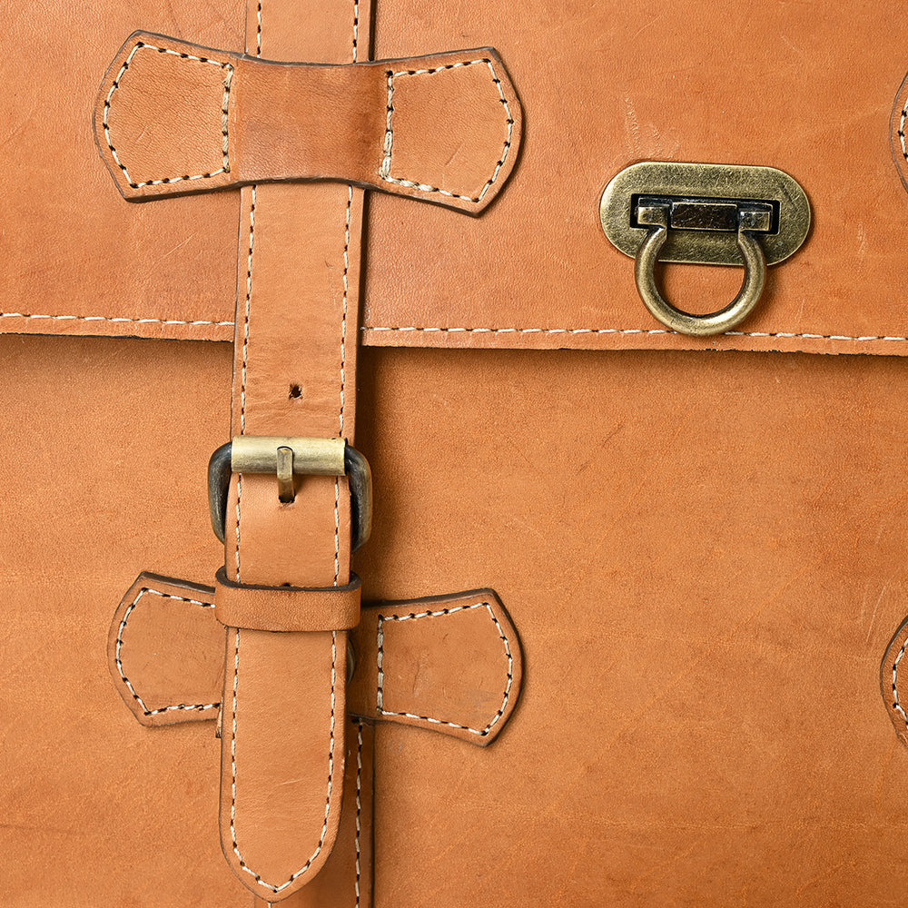 Thoughtfully designed for practical functionality, this briefcase features divided interior compartments perfect for documents, tech devices, and essentials. Sized at 11in (H) X 16in (W) X 4in (D), it delivers spacious storage without compromising its clean, handcrafted silhouette. For best preservation, keep the bag dry and periodically condition the leather to maintain its natural strength and heritage appeal.