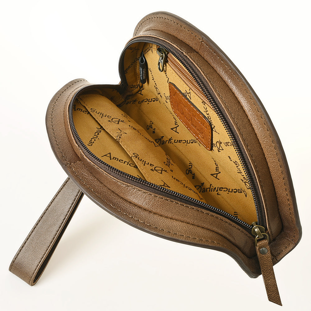 Crafted from genuine leather and detailed with expert hand-tooling, this American Darling taco bag offers exceptional durability, comfort, and everyday usability. Its compact silhouette and smooth wristlet-style carry make it easy to use on the go while keeping essentials organized and accessible.