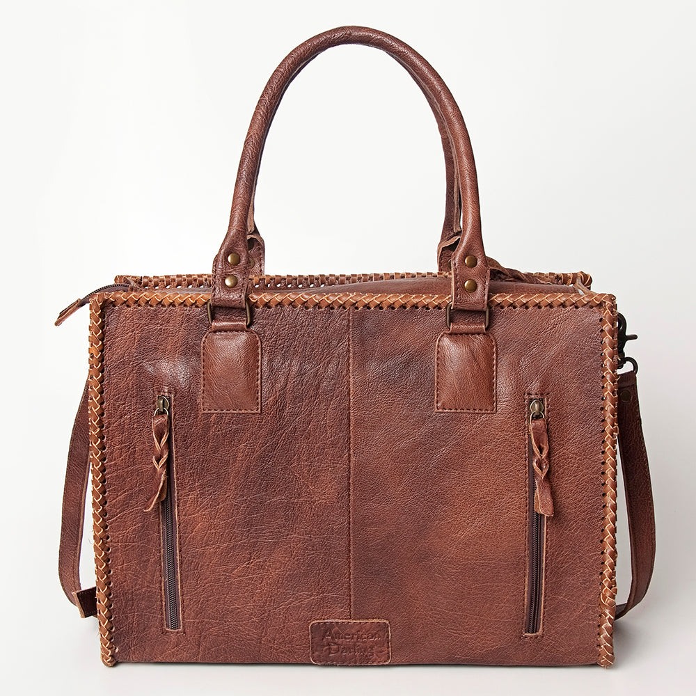 ADBG229 Printed Hair-On Hide Leather Tote with Brown Strap and Stitch Detailing