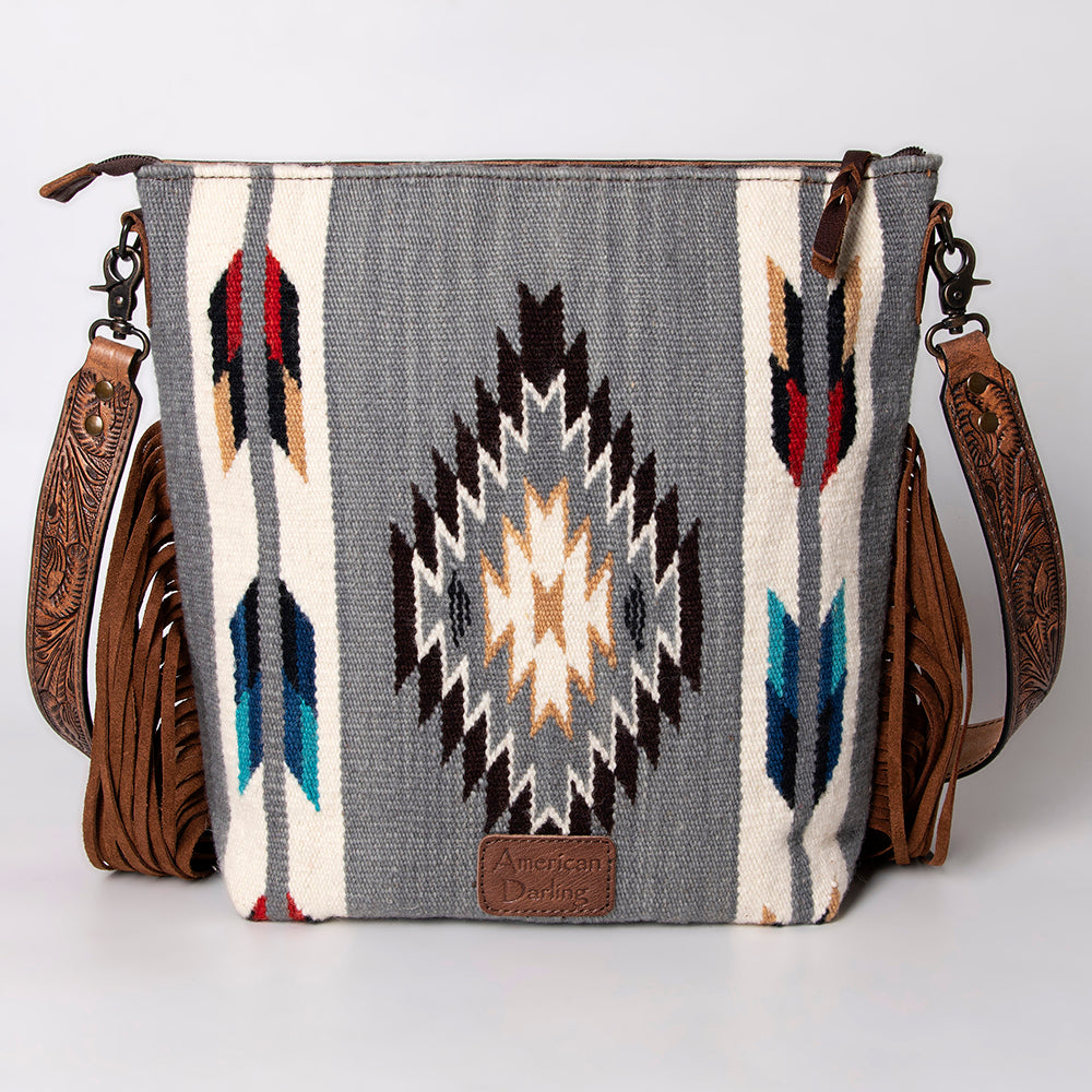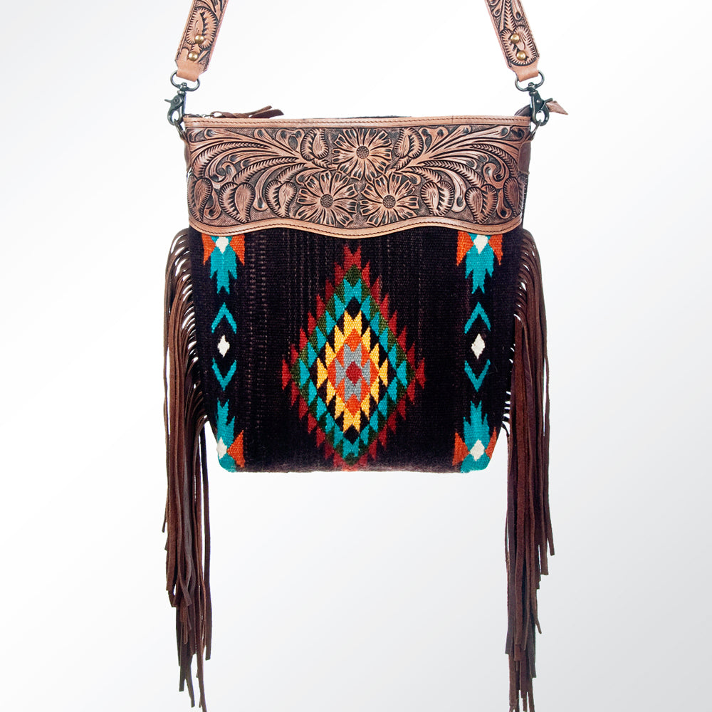ADBG510 Tooled Leather & Saddle Blanket Crossbody Bag Belle Western Fringe Purse by American Darling