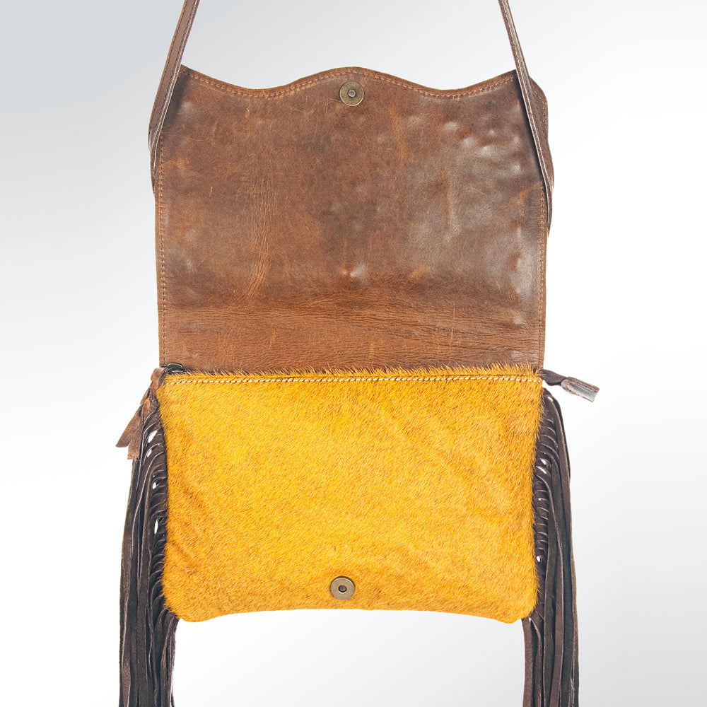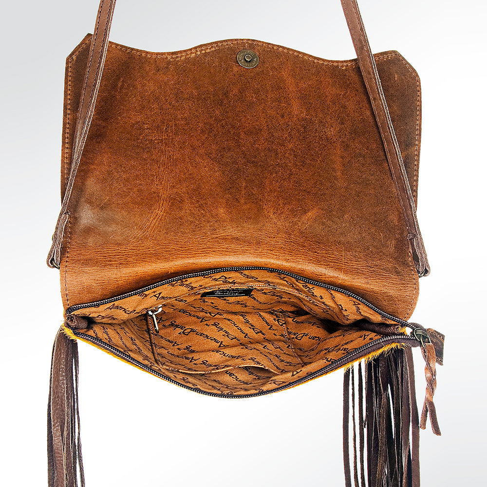 ADBG530 Cowhide Fringe Crossbody Bag with Western Studs & Concho