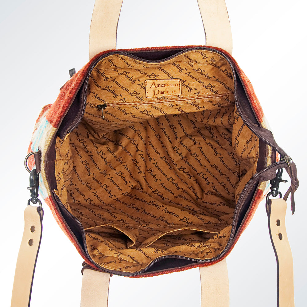 LC-ADBG573 Southwestern Wool Tote with Geometric Diamond Pattern Natural Leather Straps & Tassel