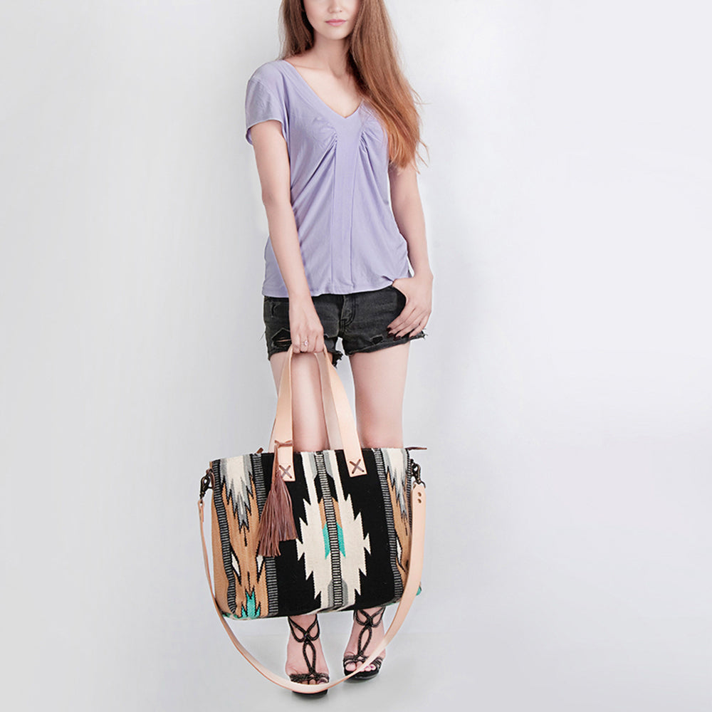 A meticulously hand weaved wool saddle blanket giving it a western traditional yet trendy and elegant look.