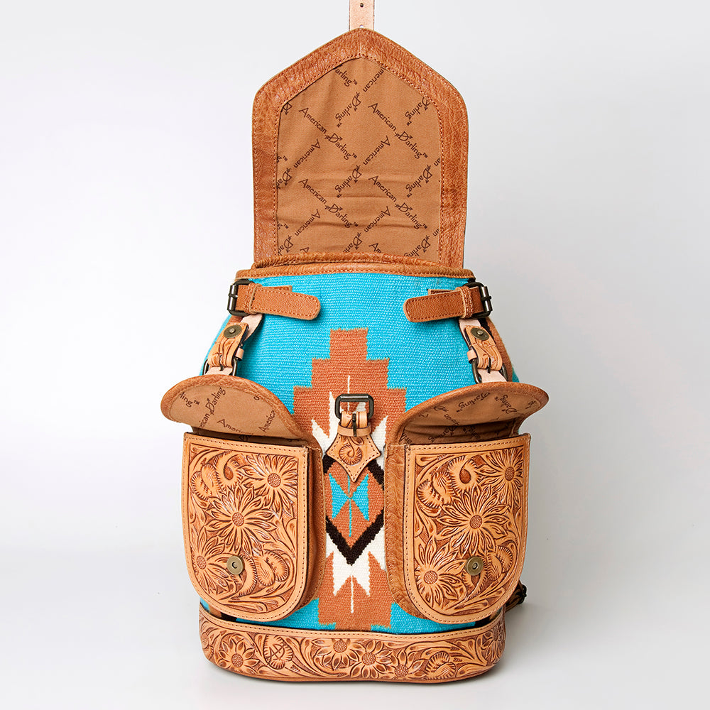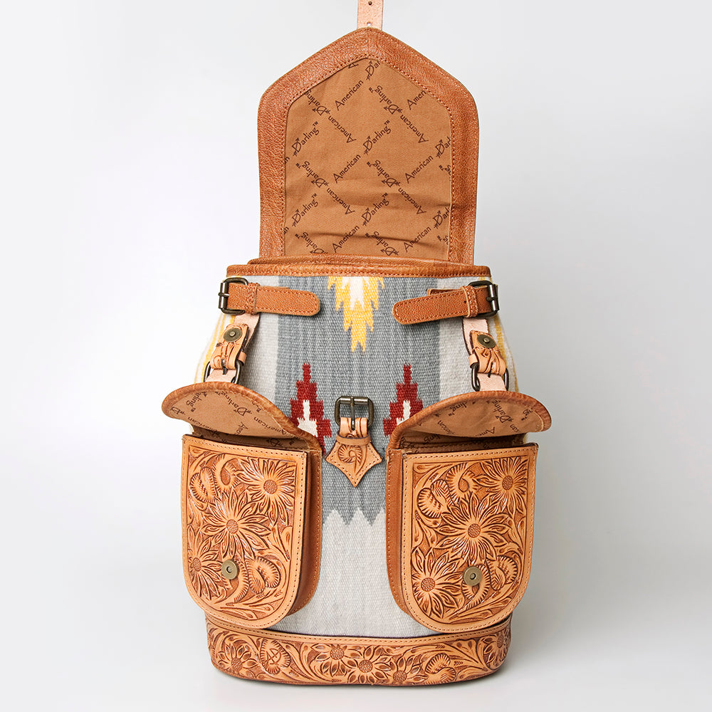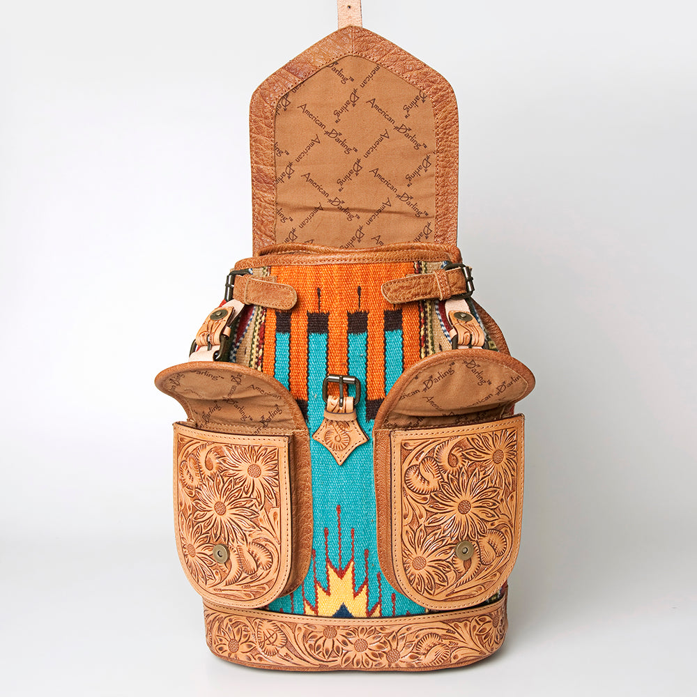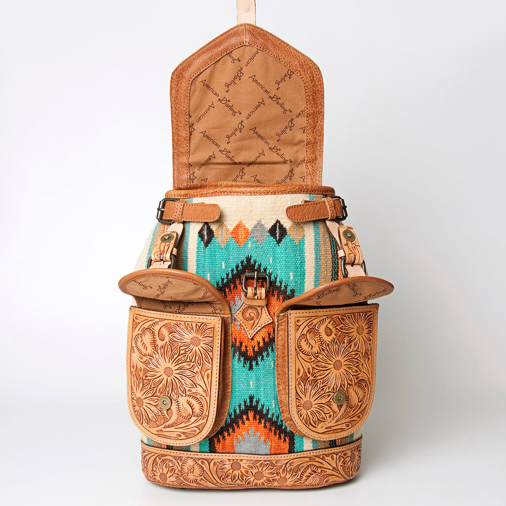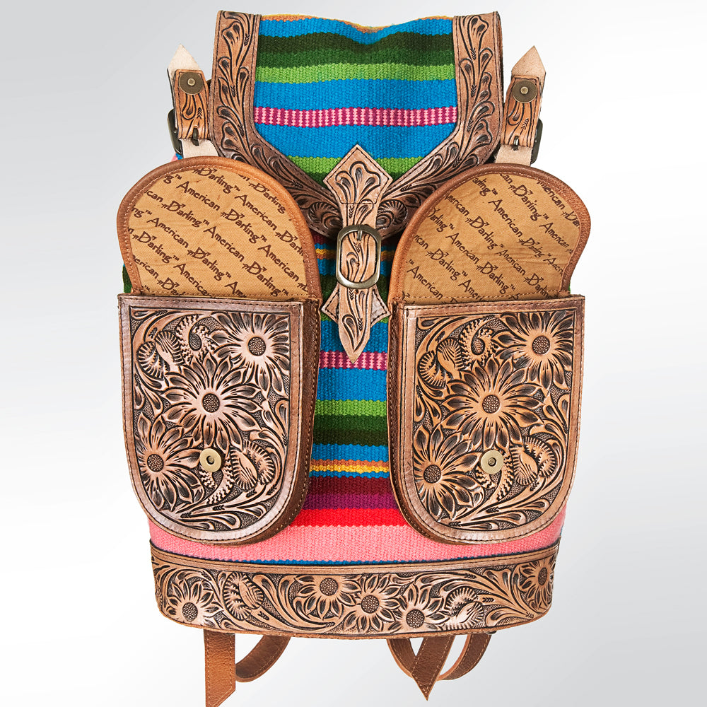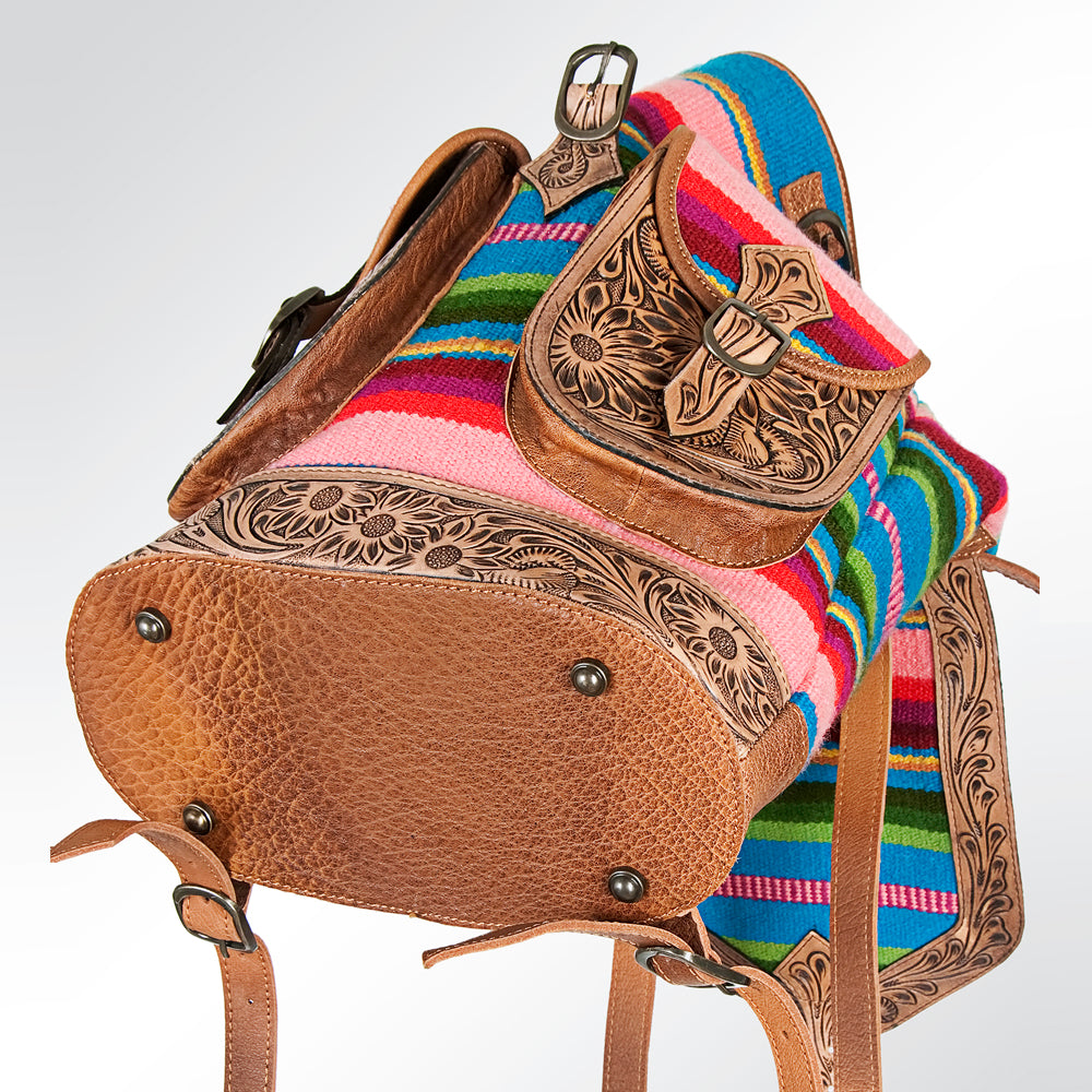 LC-ADBG703 Handwoven Serape Wool & Tooled Leather Western Backpack American Darling