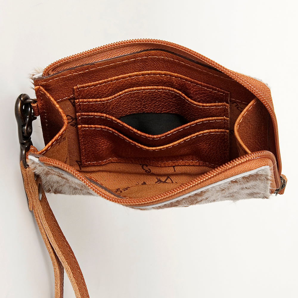LC-ADBG821 Hair-On Cowhide Leather Coin Purse Western Mini Zip Wallet
