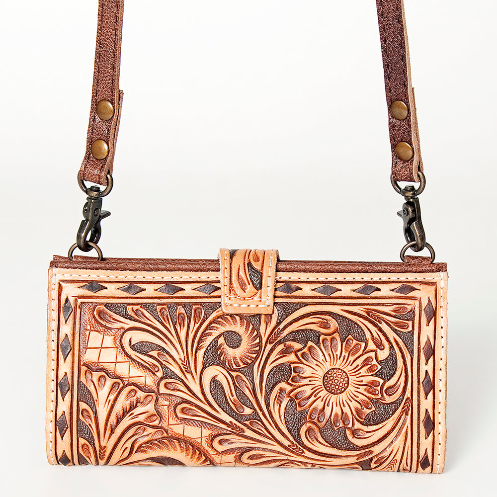 LC-ADBG832 Tooled Leather Western Crossbody Wallet Floral Cowgirl Purse with Strap