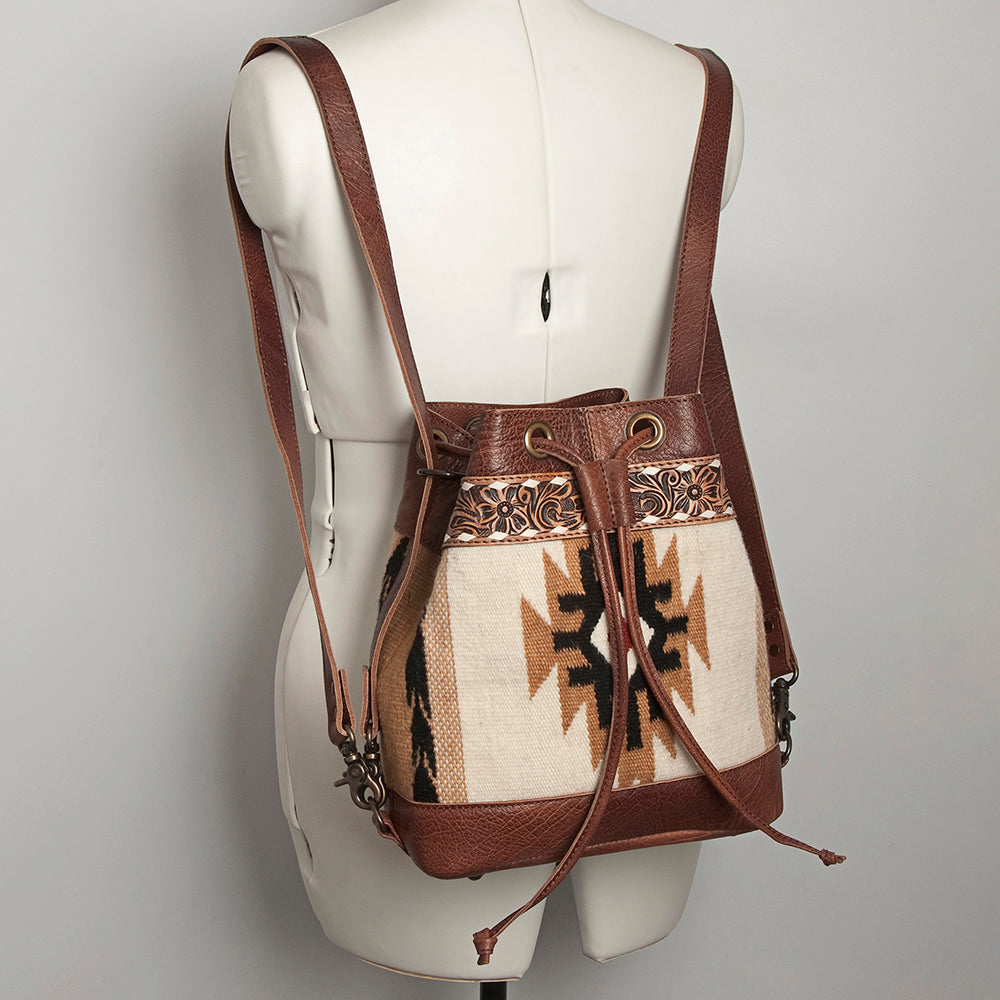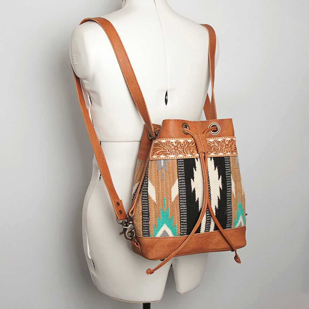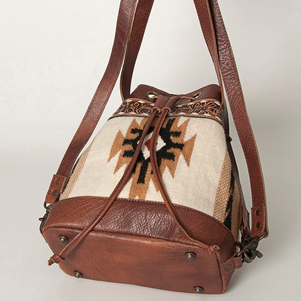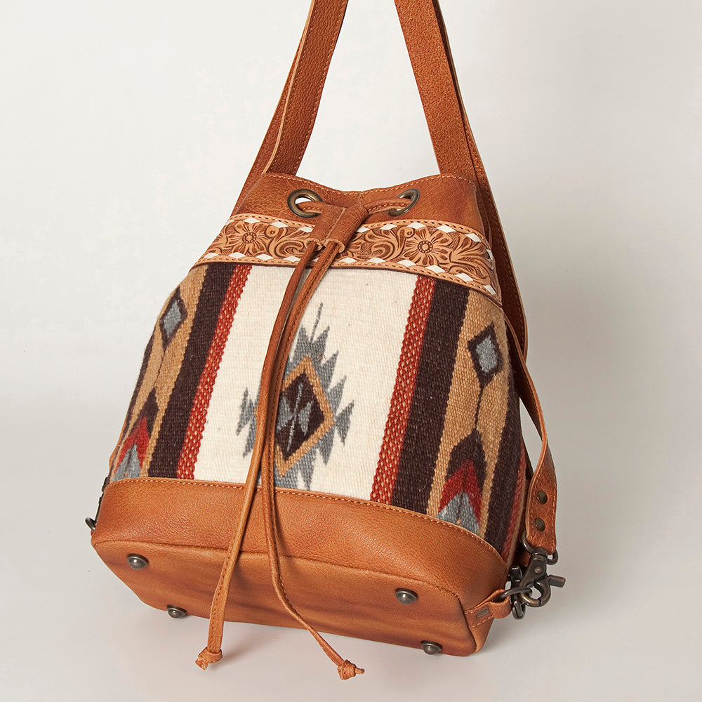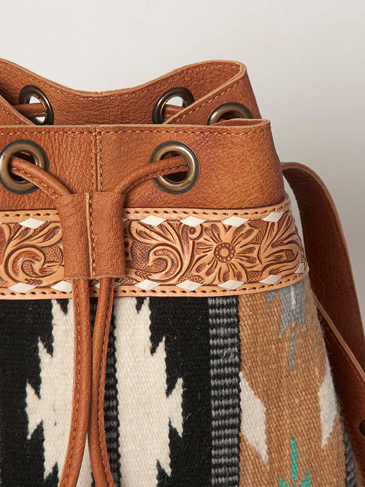 LC-ADBG862 Hand-Tooled Western Leather Bucket Bag with Wool Blanket Weave American Darling Drawstring Purse