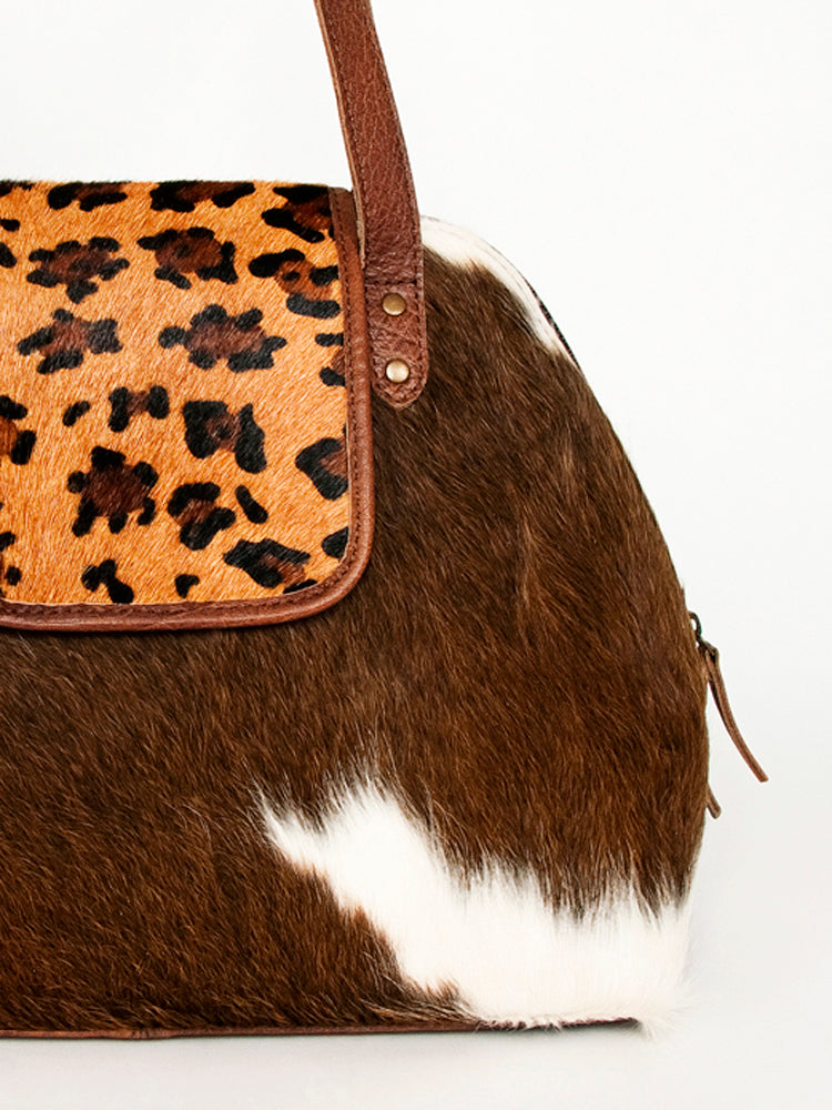 The handpicked cowhide hair-on genuine leather not only adds a soft and tactile element but also serves as an embellishment, enhancing its overall western appearance.