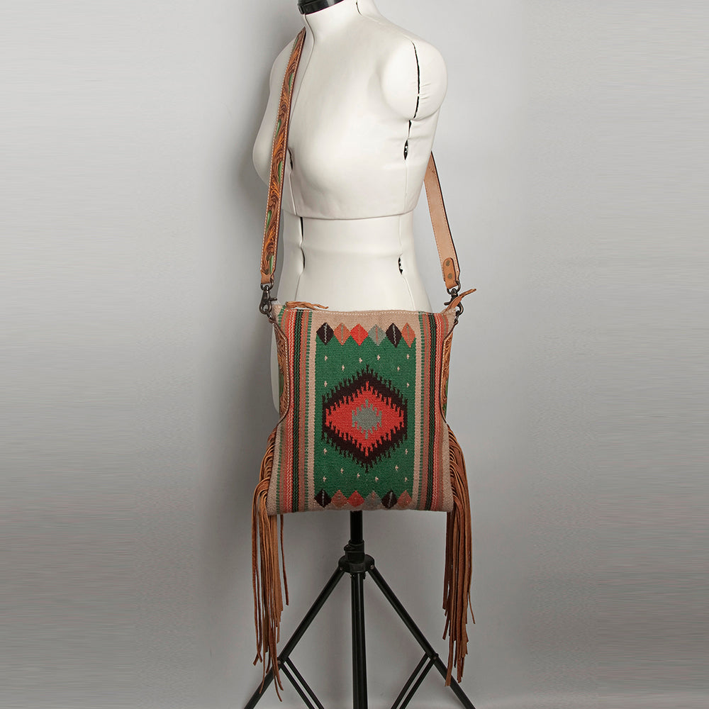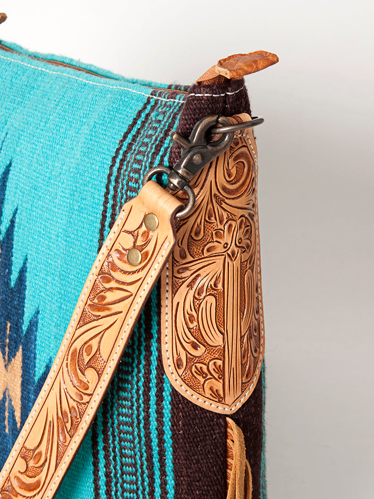 LC-ADBG905 Southwestern Wool Blanket & Tooled Leather Large Crossbody Bag Sally by American Darling
