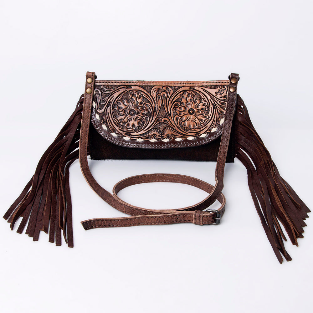 LC-ADBG924 Leather Crossbody with Hand-Tooled Floral Flap & Fringe