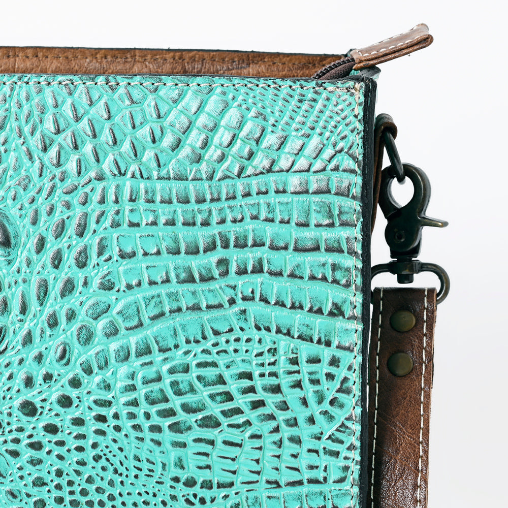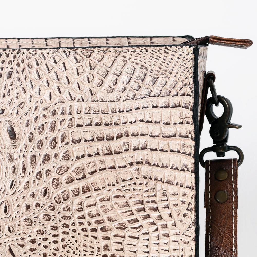 Crocodile embossed genuine cowhide leather.