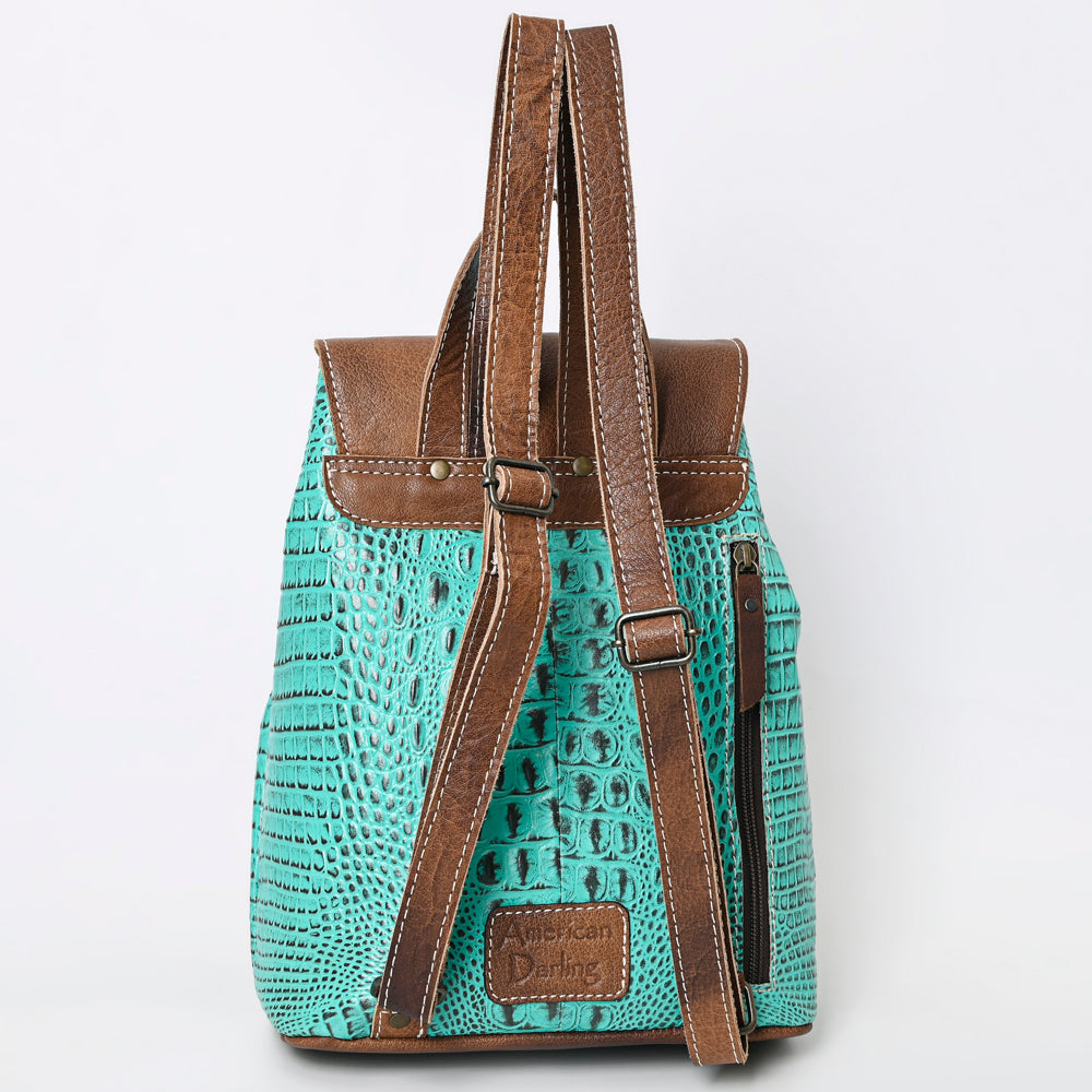 LC-ADBG972 Croc-Embossed Leather Backpack with Brown Leather Accents & Tassel